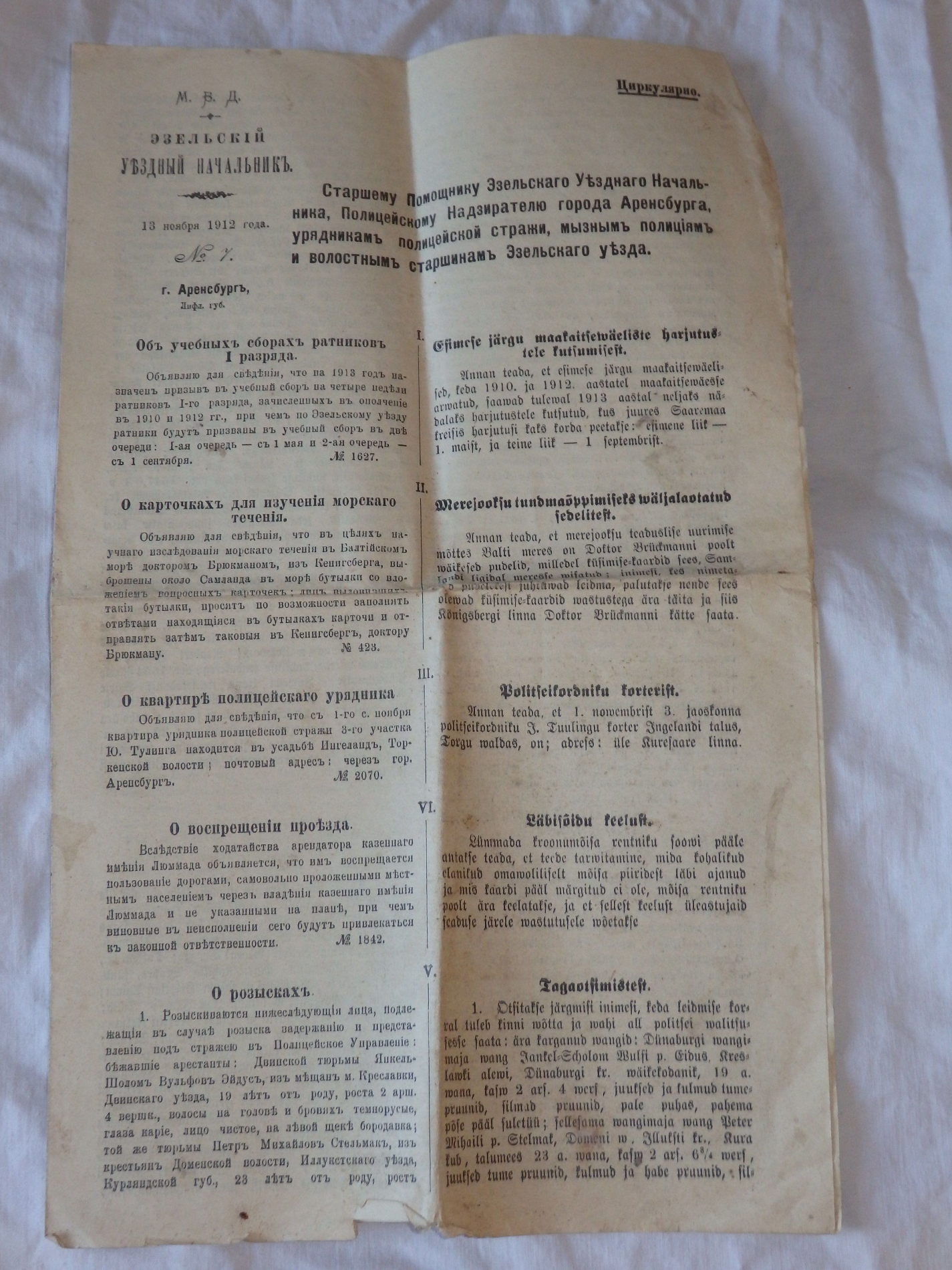 Tsaariaegne Saaremaa ukaas sõjaväele ja politseile