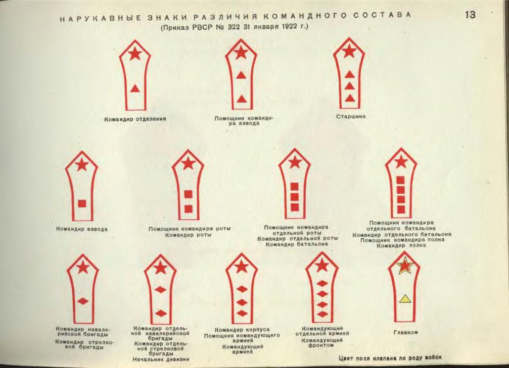 Oleks vajalik välja mõelda, mis värvi lõkmed on fotol oleval tegelasel, vb aitaks see kuidagi edasi. Ja nagu kõikjal armeedes, eriti mingi mundritüübi kehtestamise algusel ilmselt polnud nende reeglite järgimine eriti täpne. Mõni allikas väidab ka, et reakooseisu punaarmeelastel puudus see (viisnurgaga)varukaklapp üleüldse, teised väidavad, et oli (Примечание. В РККА красноармеец клапана на рукаве одежды не имел совсем. Такой зеленый клапан со звездой имели только красноармейцы войск ОГПУ.) Ilmselt oli ainult "organite" reakoosseisul - Imelik jah, et pole väeliigi märki/tunnust.