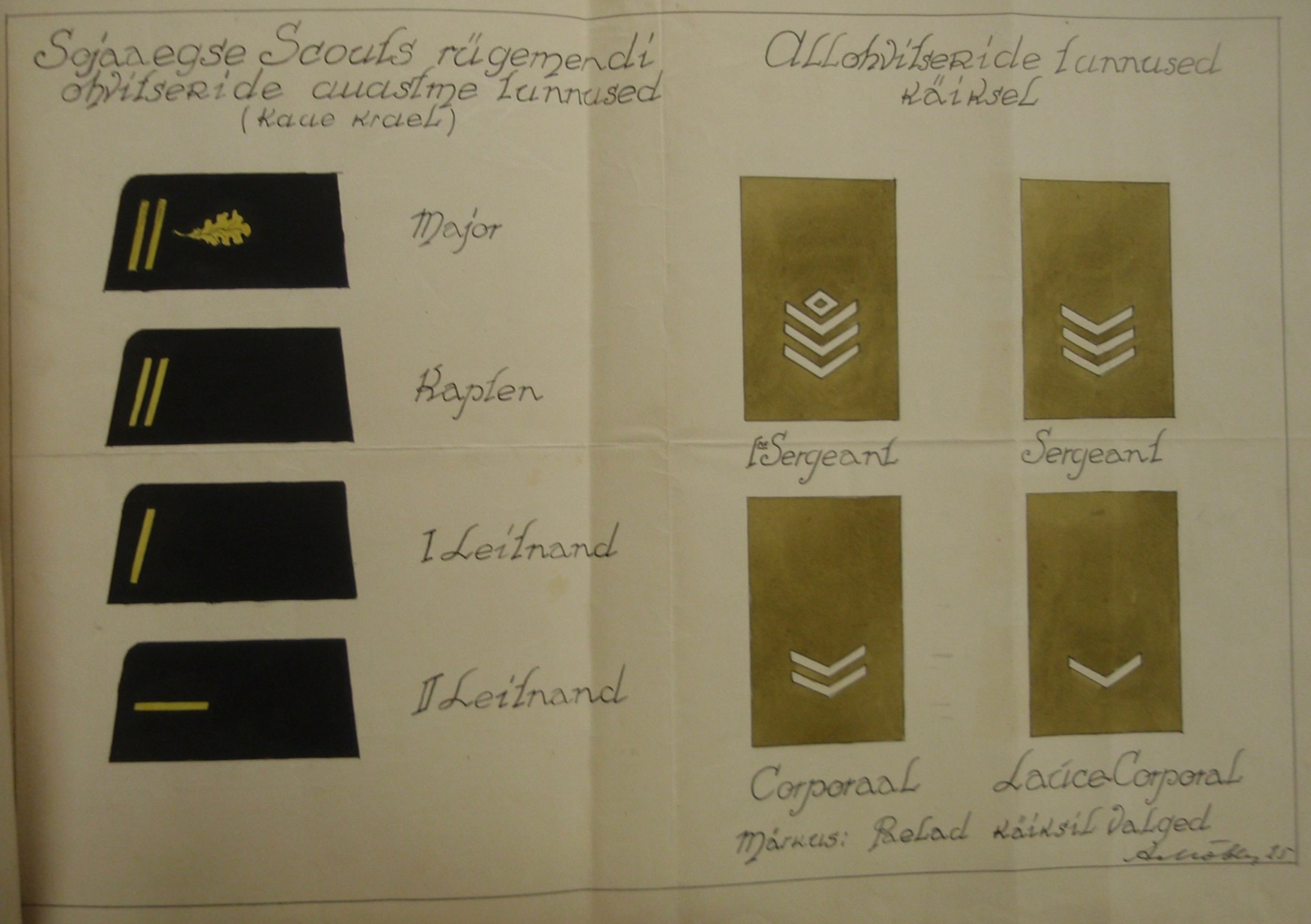 Siin peaks olema näide Scoutide VS-aegsetest eraldusmärkidest.