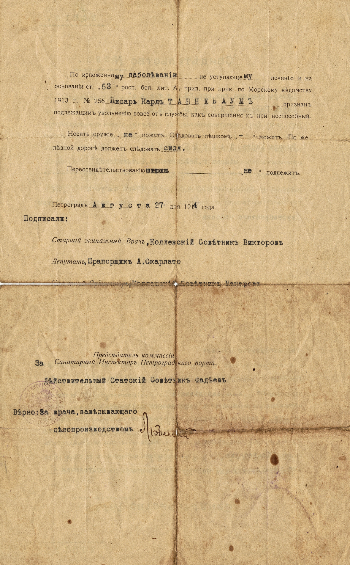 Karl Tannebaum oli elukutseline paberimäärija ning ilmselt seetõttu sai temast kirjutaja ka impeeriumi mereväes. Täpsema teenistuskäigu panen kirja mõni teine päev, aga praegu lisan vaatamiseks mõned dokumendid, mis tänaseks veel säilinud on. Miks ma nüüd selle teema üles ajan on see, et väidetavalt oli tal Messiina maavärina tagajärgede likvideerimisel osalemisel saadud autasule lisaks ka Georgi rist. Ehk leiaks sellele kinnitust ning saaks ta teiste sekka foorumi tublis nimekirjas.