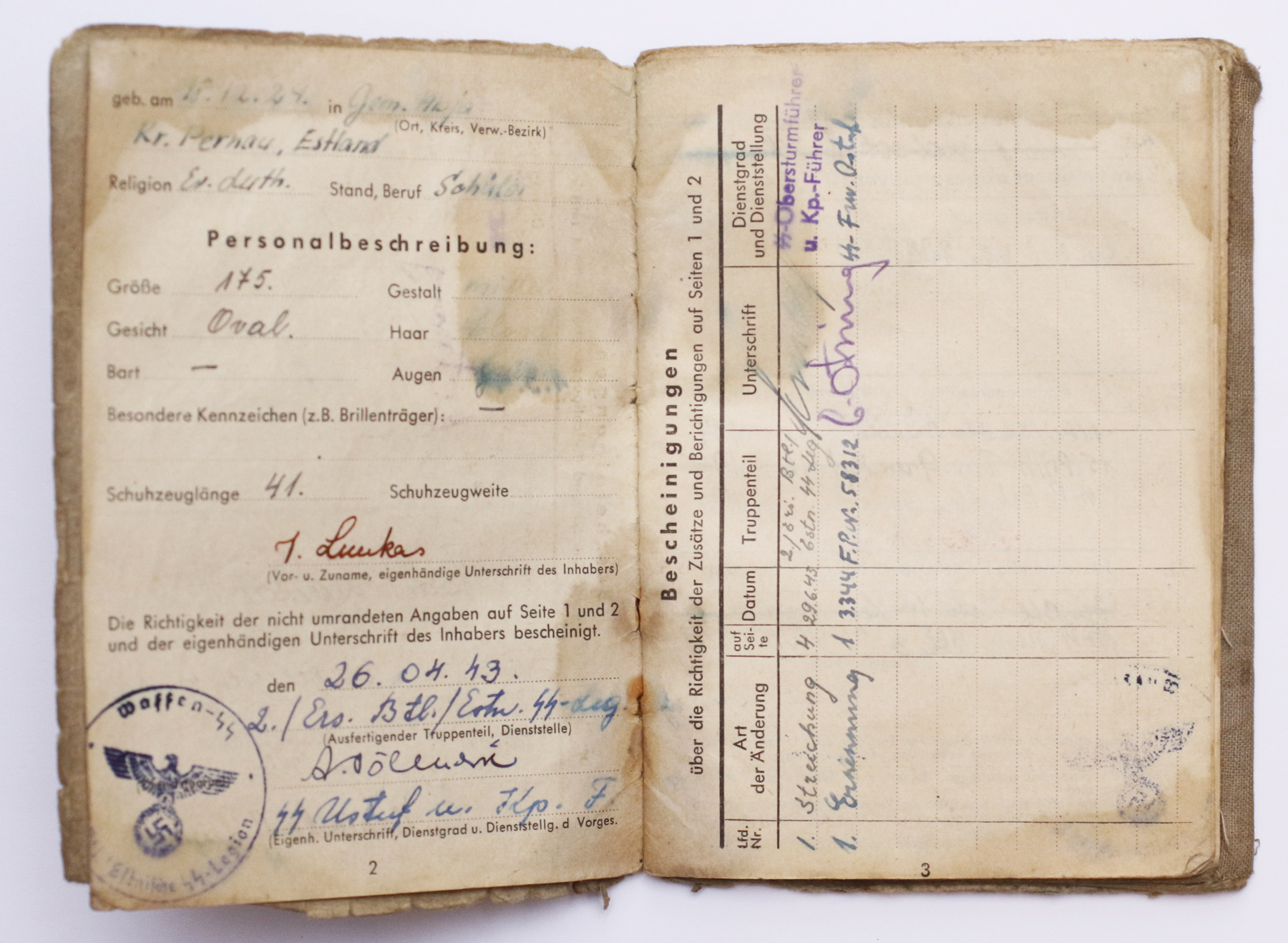 Palgaraamatu omanikust paar ilusat ülesvõtet.uscha kirjutas:... kakskeelne SB, mis väljastatud 20. SS tagavarapataljoni põhikompanii Unterscharführer Aleksander Laaneväli'le.