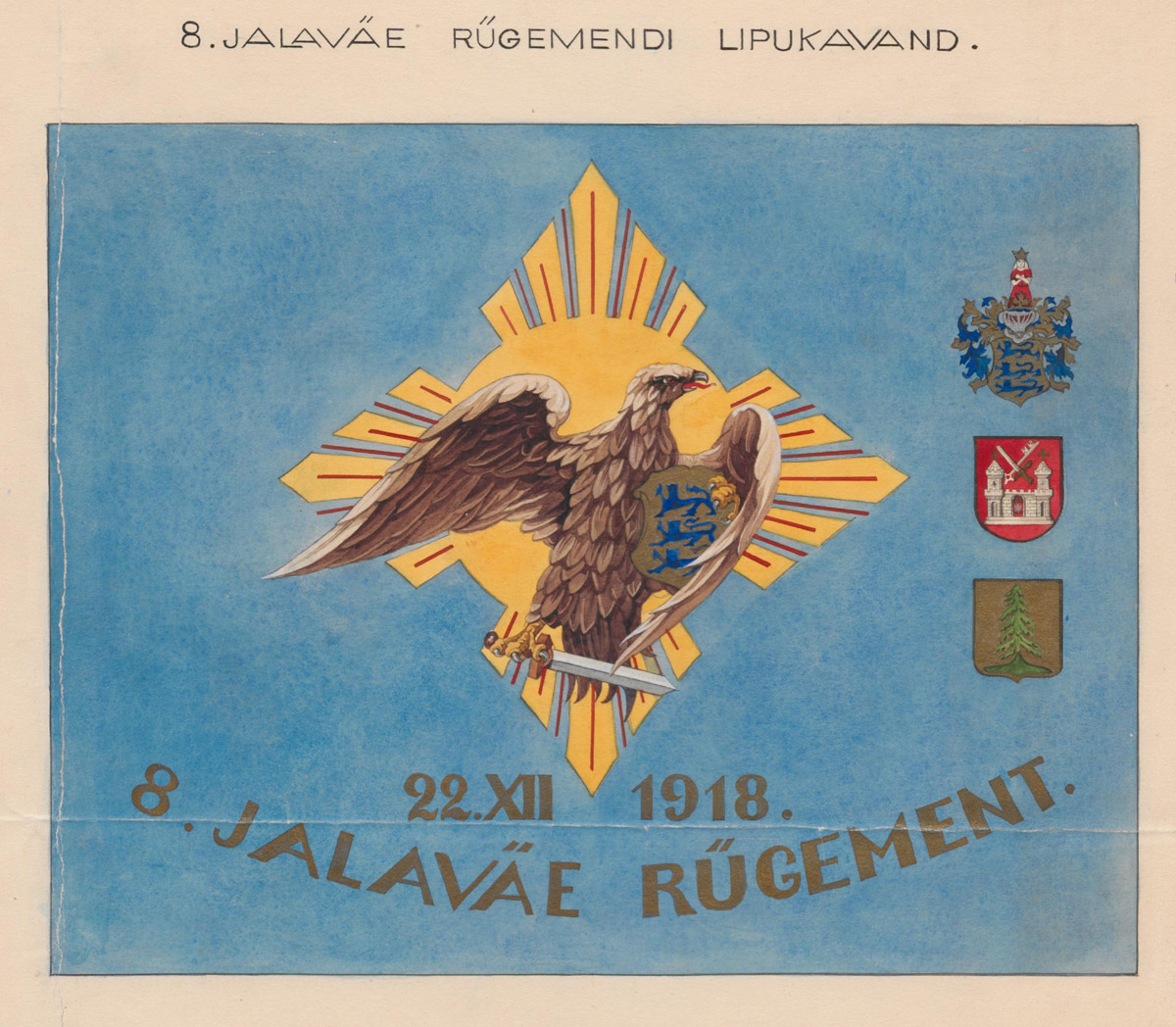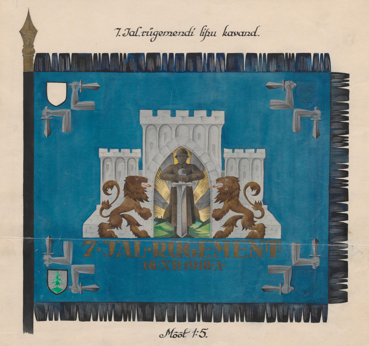 7. ja 8. jalaväerügemendi lippude kavandid Riigiarhiivist.