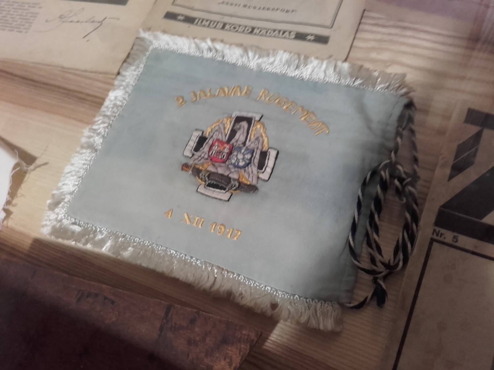 Lisan siia ühe postkaardi oma kogust. Siiani arvasin, et tegemist kaitseliidu lipuga. Taavi postitust siin vaadates/lugedes selgus, et rügemendi lipud tagant sellised? Kaardil taha on harilikuga kirjutatud Viljandi Kaitseliidu Lipp. Võimalik, et tegu siis Sakala partisanide lipuga?