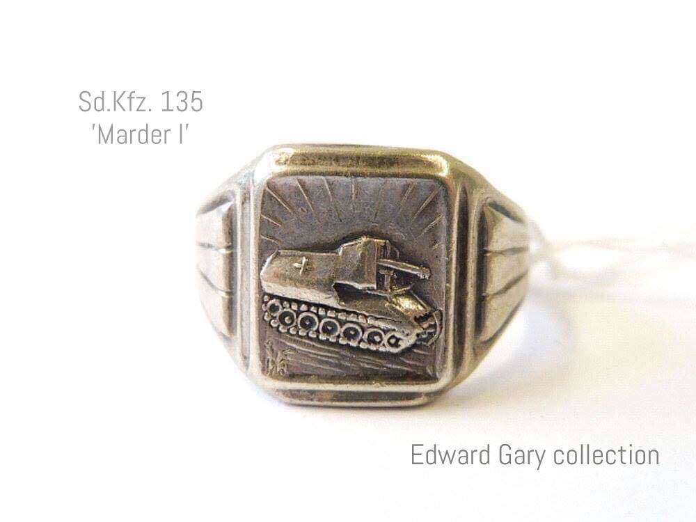German ring with Sd.Kfz.135 'Marder I' on the front plate. To day only 2 examples are known to exist and this is one of those 2 (other is in relic condition). Note that the ringband on this one is the same as on the ring I showed earlier.