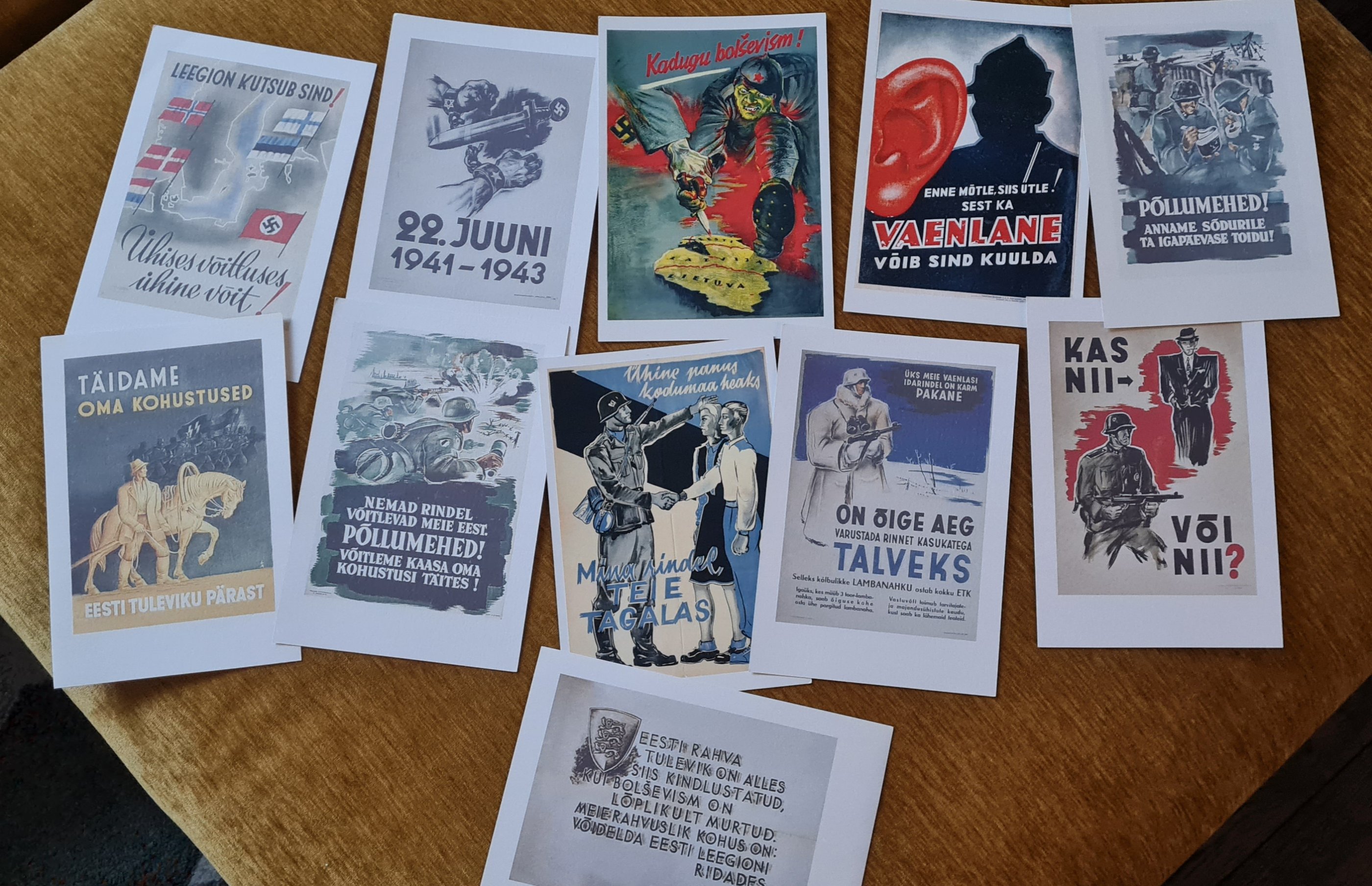 Ca 15+ aastat tagasi liikusid laatadel sellised sõjaaegsetest plakatitest tehtud vähendatud trükipildid. Samu plakateid kasutas vist Grenader kirjastus oma kalendrites jne. Kas on teada, kus kohast nende plakatite originaalid asuvad, mille järgi neid trükiseid valmistati? Osa vist on Rahvusraamatukogust ja Rahvusarhiivist aga mõne plakati originaali, mis seal seerias on ei tundu olevat kummaski nendes asutustes (näiteks alumise rea parempoolset "Kas nii või nii?" plakatit.