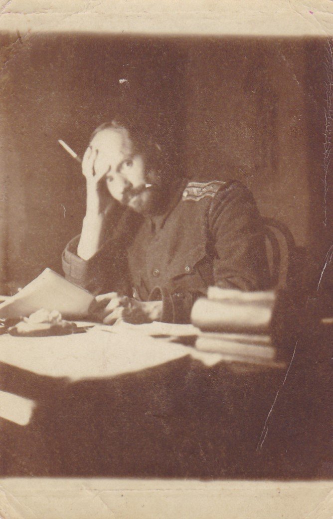 Pb lipn.k 1915. I ms-s 87.Neuslotski polk (Нейшлотский полк) Läänerindel. (sai haavata, siis põrutada ja kolmandal korral mürgistuse gaasirünnakus) 1915--17, al.ltn 1916, Peale hospidali Novgorodis tagavarapataljonis rooduülem. Gaarirünnaku tagajärjel kaotas mõneks ajaks kõnevõime.
