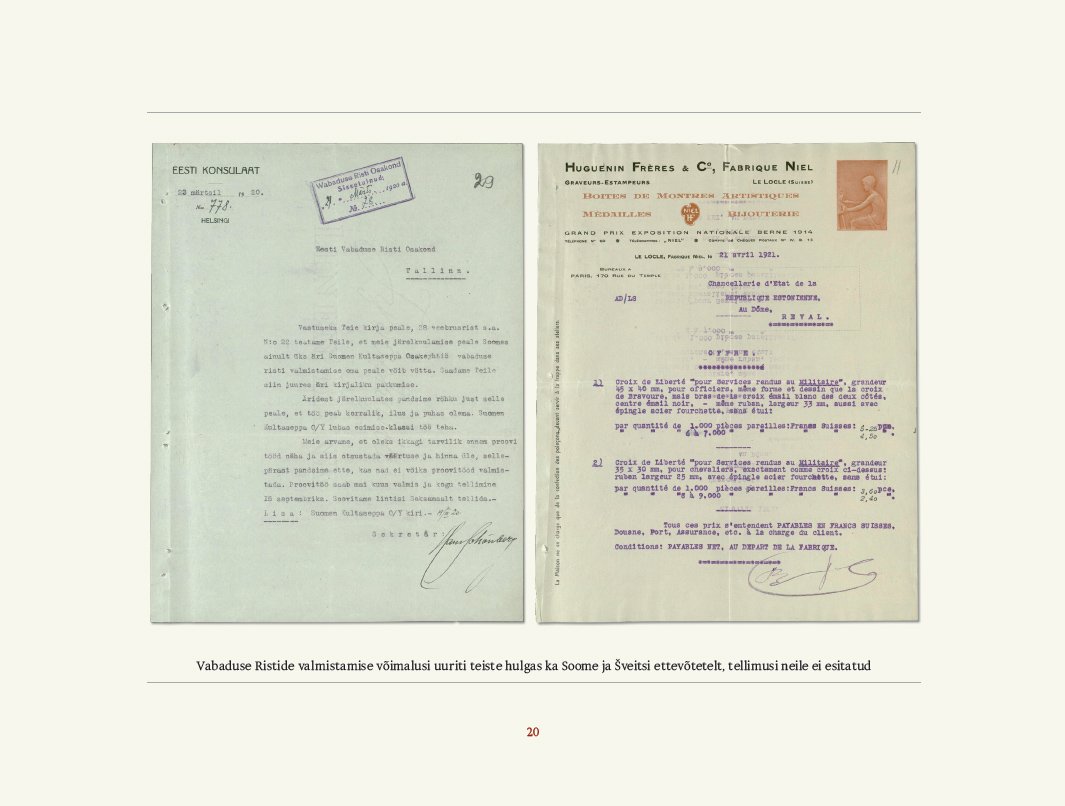 Põhirõhk on teadaolevatel Vabadusristi erimitel aga lisaks on veel omaaegset fotomaterjali, arhiividokumente ja arvandmeid valmistatud autasude kohta.