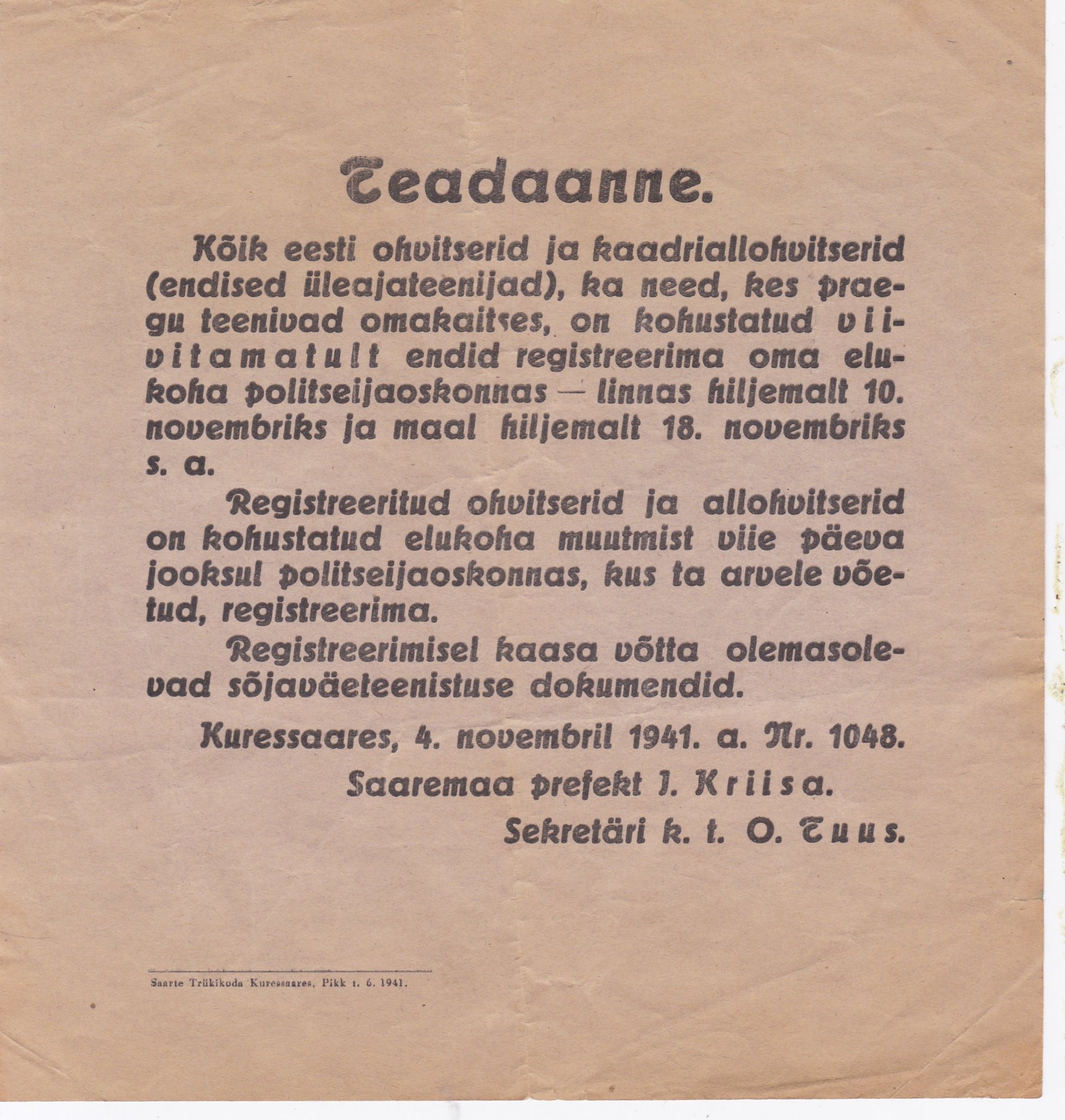 Saksa ajal käisidki mobilisatsioonid politseiprefektuuride kaudu, süsteem oli selline. Politsei koostas kutsealuste nimekirju.