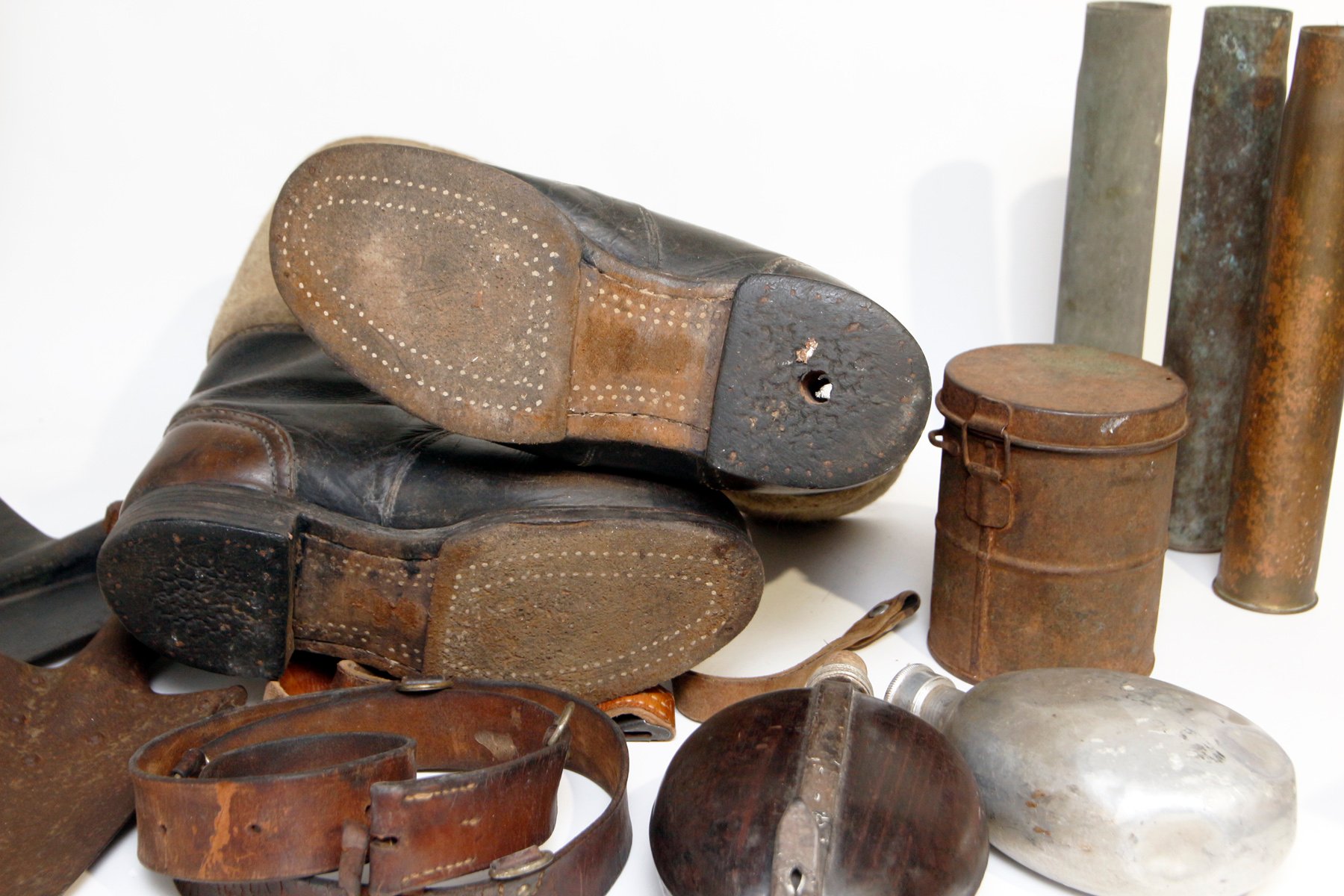 Sõjaaegne Punaarmee labidas, tsaariarmee labidas (vist), mingi poolautomaadi salv, Kaitseliidu vöörihm, MP rihm (tõenäoliselt koopia), kaks välipudelit, Esimese maailmasõjaaegne gaasimaskitorbik, pealesõjaaegsed Saksa saapad (ühel saapal on talla all auk) ja kolm mürsukesta. Kogu kupatus 120€ (sisaldab Smartpostiga saatmist).