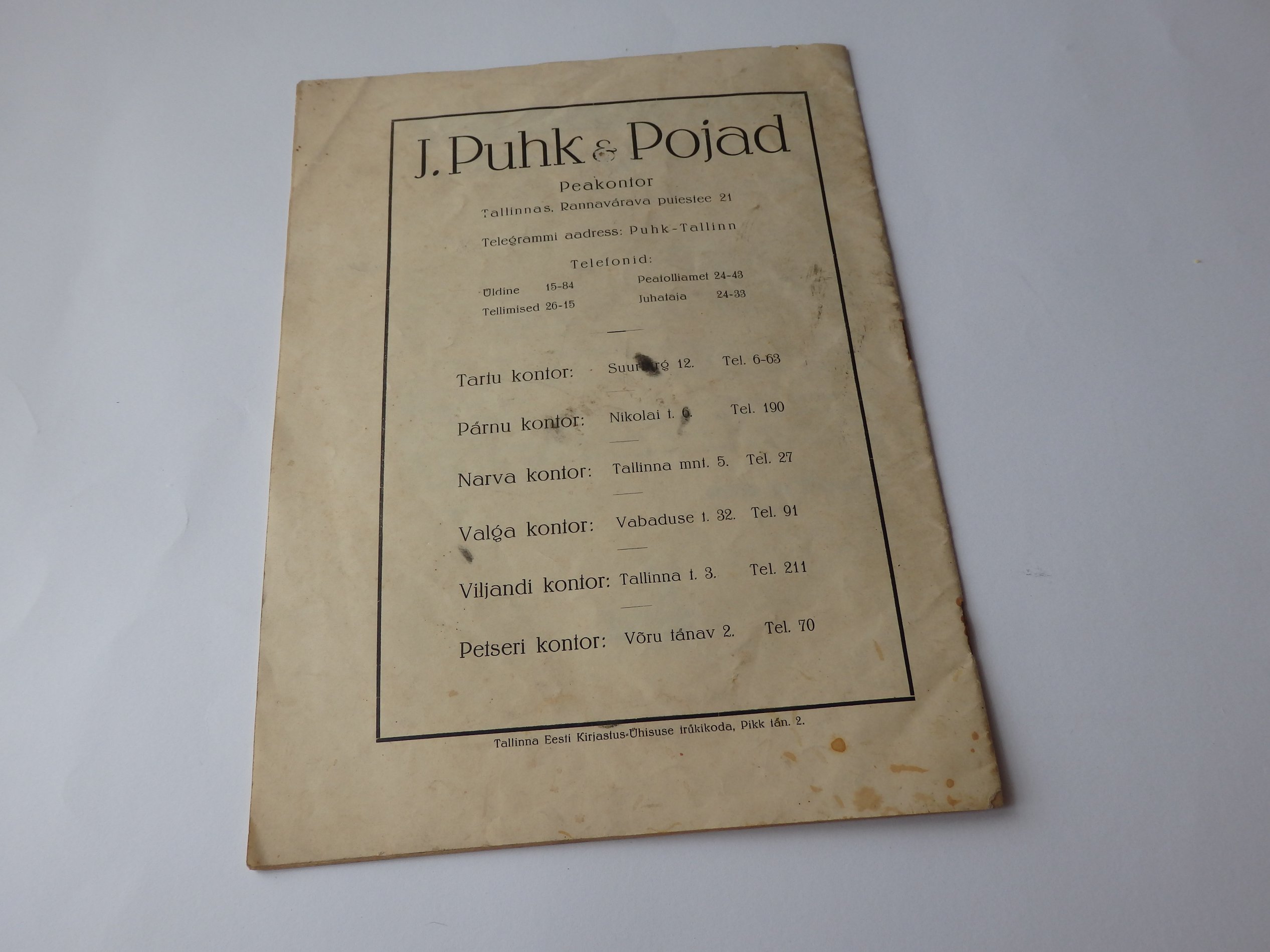 See on küll üks üsna levinud Paide vaade, aga kui pilti süveneda, siis on vasakul servas värava kohal näha silt "Puhk ja Pojad- Paide Kontor".