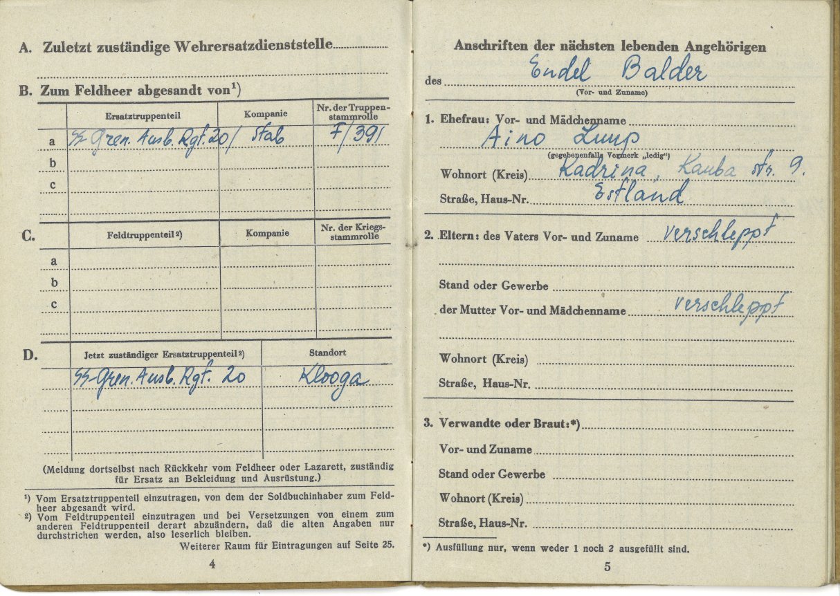 I knew Endel when he was a alive, he was mobilized in the spring of 1944 and served as a VB in 7./Art.Rgt.20.