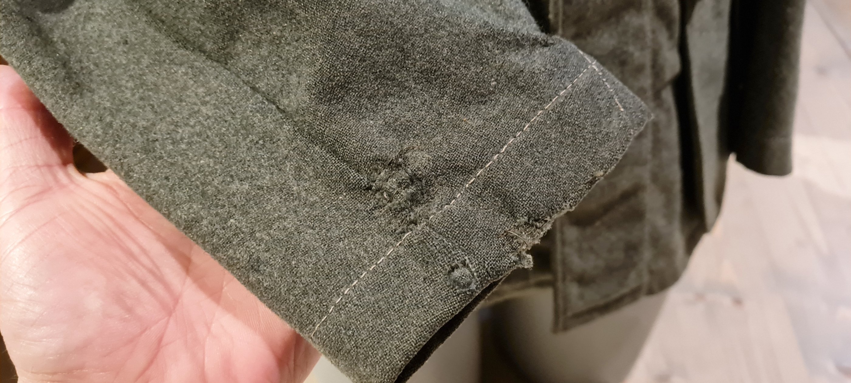 Embleemide jälgi näha ei ole ja kõlbab peale ajada WH, W-SS embleemid või teha Politseipataljoniks (näiteks meie 36. Politseipataljonile jagati selliseid M41 kuubesid). Lisaks saksa templitele on sees ka Soome armee (SA) templid.