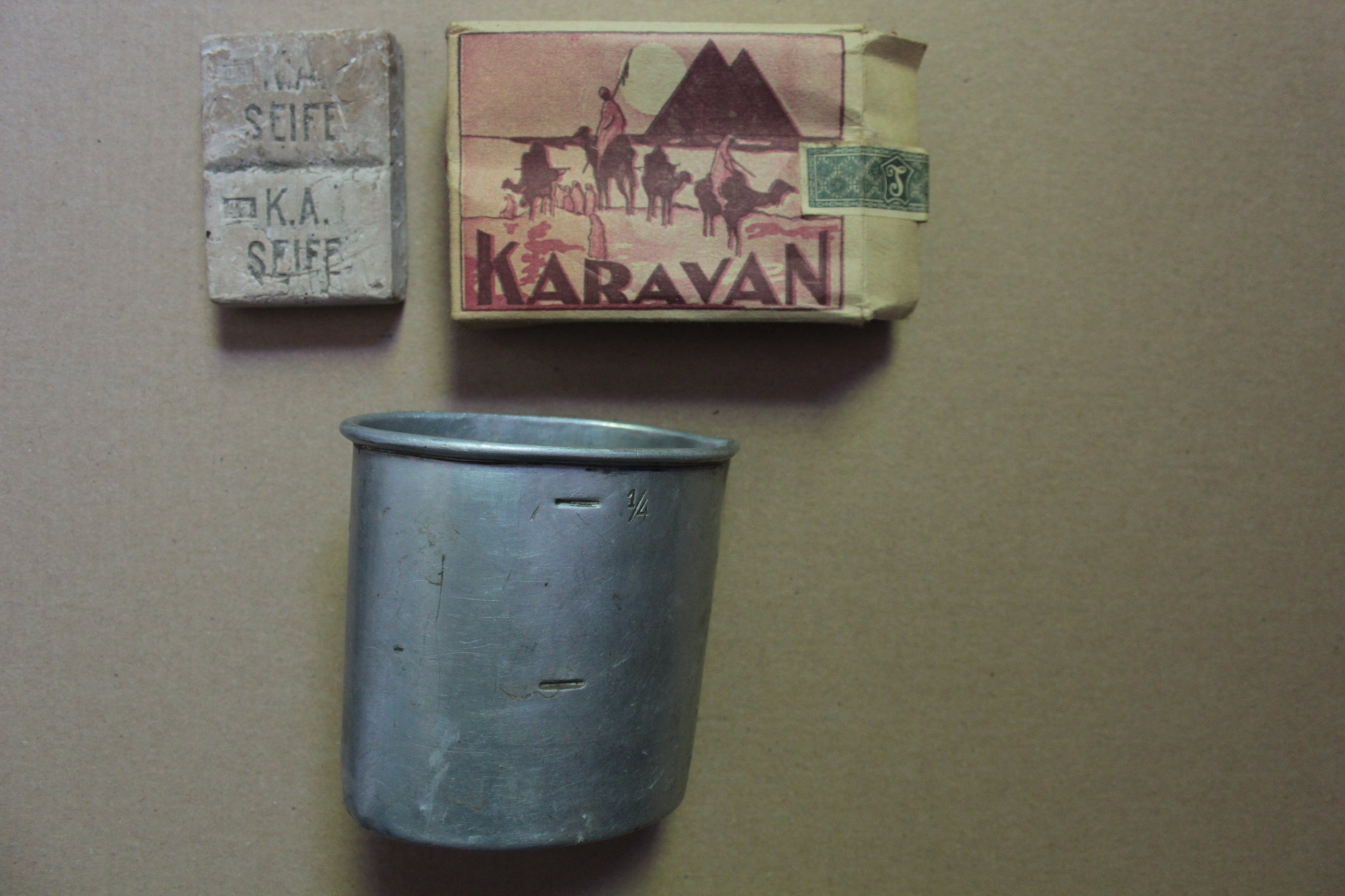 M: Saksa sõjaväe seep, joogipudeli tops, "Karavan" sigaretid.