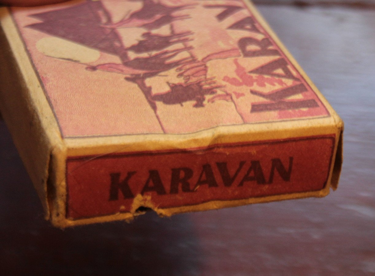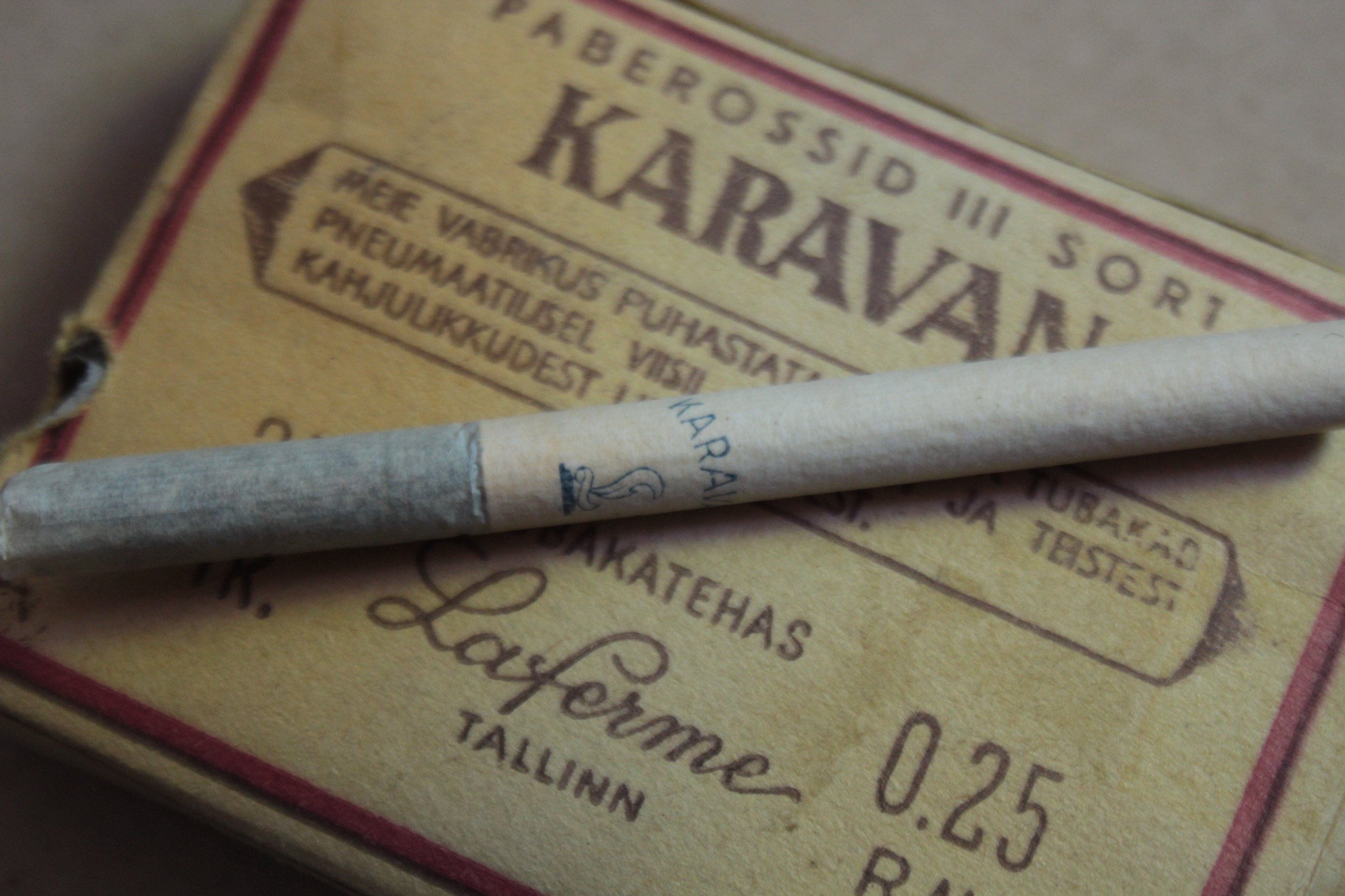 "Karavan" on ilmselt niiskusega otsast lahti tulnud. Ei ole rebenemisjälgi liimil. Niiskeks tehes saaks tagasi kinni liimida kui soov. Kõik suitsud sees alles. 25