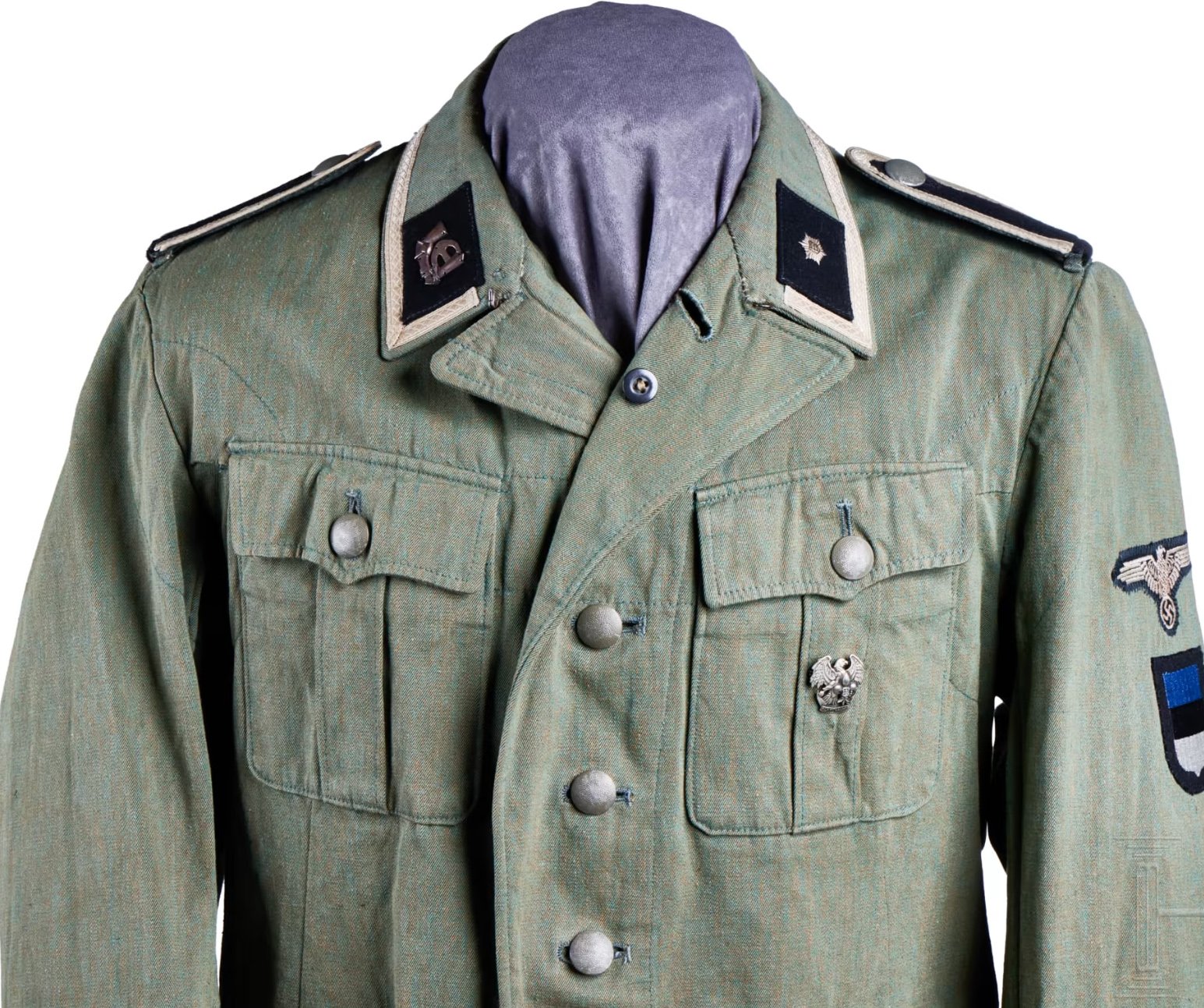 Viimastel nädalatel kütab kirgi USA's toimuvale Hermann Historica oksjonile pandud 20. ED alljuhi vormikuub. Oksjon toimub millalgi oktoobri keskel ja väikese uudisnupuke sellest ilmus isegi Eesti Ekspressis. Nimetatud vormikuub on pärit David Delich'i kollektsioonist, kes paar aastat tagasi siit ilmast lahkus. Ameerikamaal on palju kogujaid, kelle jaoks on piisav garantii, et kuub oli Delich'i kollektsioonis, sest mees on seal pooljumala staatusesse tõstetud. Tegelikult leiti see kuub Eestist ca 30 aastat tagasi ilma ühegi embleemita ja läks koguja A. kätte, tema sõber P. õmbles peale embleemid. Varrukakilp ja alljuhi hõbedane kraepael on õiged, ülejäänud embleemid on koopiad. Ma ei tea, kelle kaudu see läände jõudis aga mingid kanalid tal siin olid, sest talle tõmmati kohalike Maarjamaa meeste poolt ikka usinalt kotte pähe. Aastaid tagasi näidati ühes foorumis tema Eesti W-SS teemalist kollektsiooni ja see koosnes suuresti ainult koopiatest. Ja isegi mitte ainult koopiatest, sest mingi eriti kirgas tüüp oli talle maha müünud idee, et viikingilaevaga sõled on W-SS ridadesse kuulunud eestlannade vormiriietuse juurde kuuluv aksessuaar ja siis oli talle neid terve sületäis müüdud.