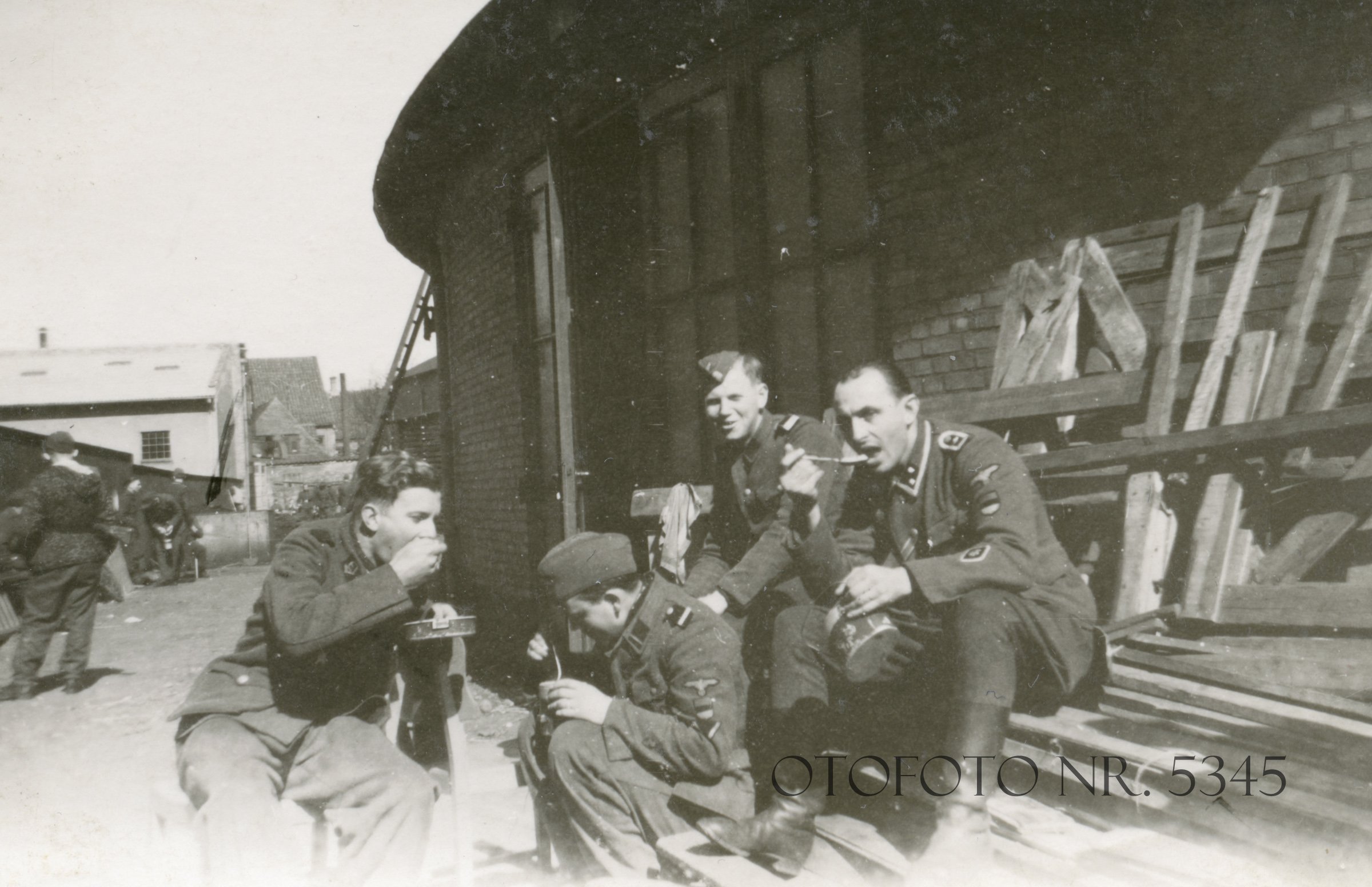 Ning täitsa lõppu veel üks 1945. aasta kevadel (ilmselt Taanis) tehtud ülesvõte, kus Oberscharführer Tarmo Mägi katelokist putru sööb. Mägi on kõige parempoolsem - meestele on välja jagatud Itaalia päritolu katelokid ja kahe mehe vasaku varruka alumises osas näha olevad sanitaarteenistuse rombid on mitte-reeglipärased / textbook variandid ja WAF'is tunnistataks kindlasti koopiateks.