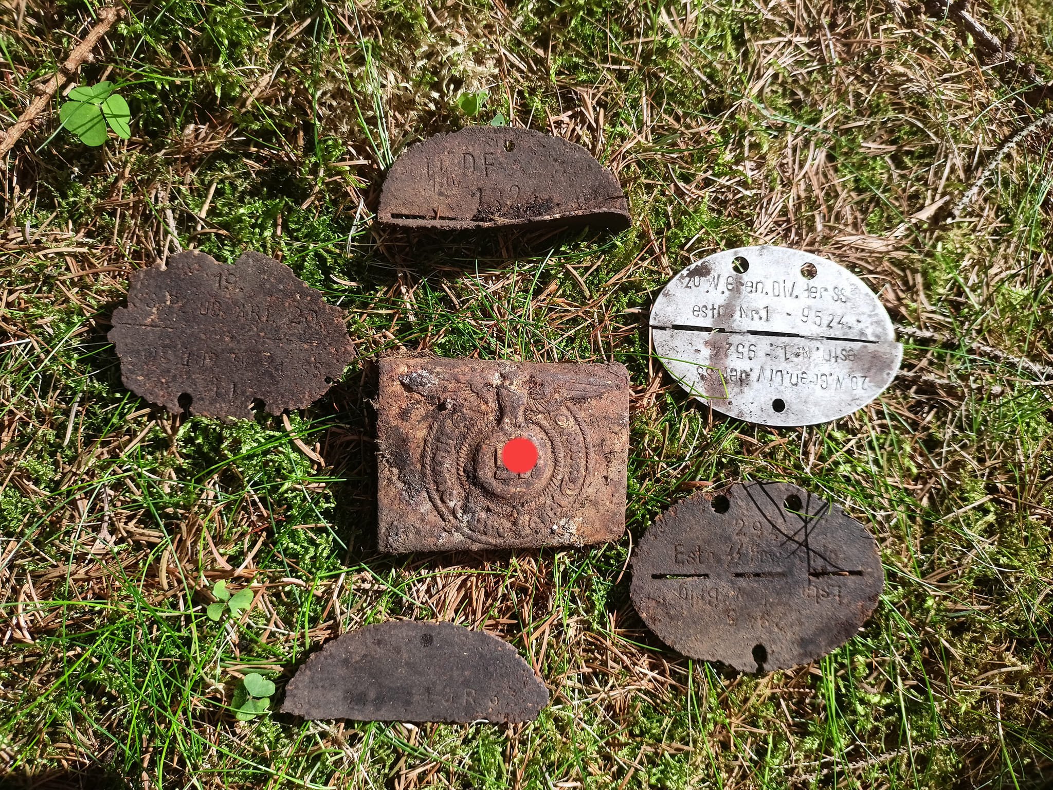 Maapinnas on huvitavaid teadmisi - hiljuti kusagilt Tšehhi pinnasest välja kõblatud "SS-PZ.JG.ABT. 20." žetoon! Ei ole varem sellist näinud ega ka kusagil dokumentides sellist kirjet kohanud. SS-PZ.JG.ABT. 20. > SS-Panzerjäger Abteilung 20 ehk 20. Eesti SS diviisi tankikütid. Koos sellega leiti veel kaks "20. W.Gren.Div.der SS estn. Nr. 1" ja "Estn. SS-Frw.Brig." kirjaga žetooni ning paar Saksa SS üksuse oma ja W-SS vöörihma pannal.