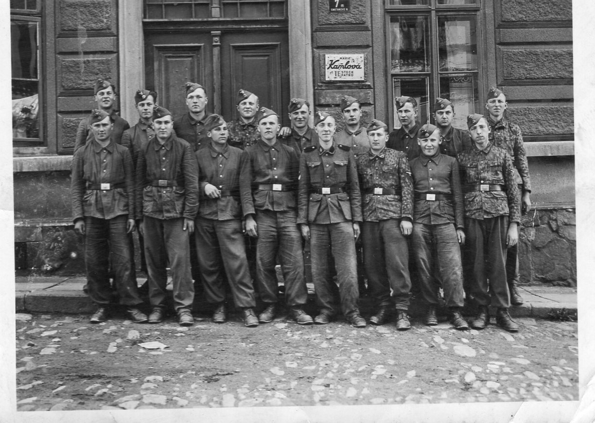 Grupifoto eestlastest, kes õppisid Deutsch-Brod'i W-SS sanitaride koolis. Ees reas "Wiking" käiselindiga Spiess'i vasakul käel on U.Stuf. Harald Jakob Kornel.