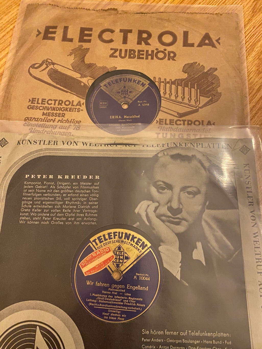 Lisaks Eesti ja välismaa plaatidele,olen ka saanud paar Saksa ww2 armee plaate,mida siis vahest olen ka huvilistele mängima pannud,eks Erika ole ikka põhiline!