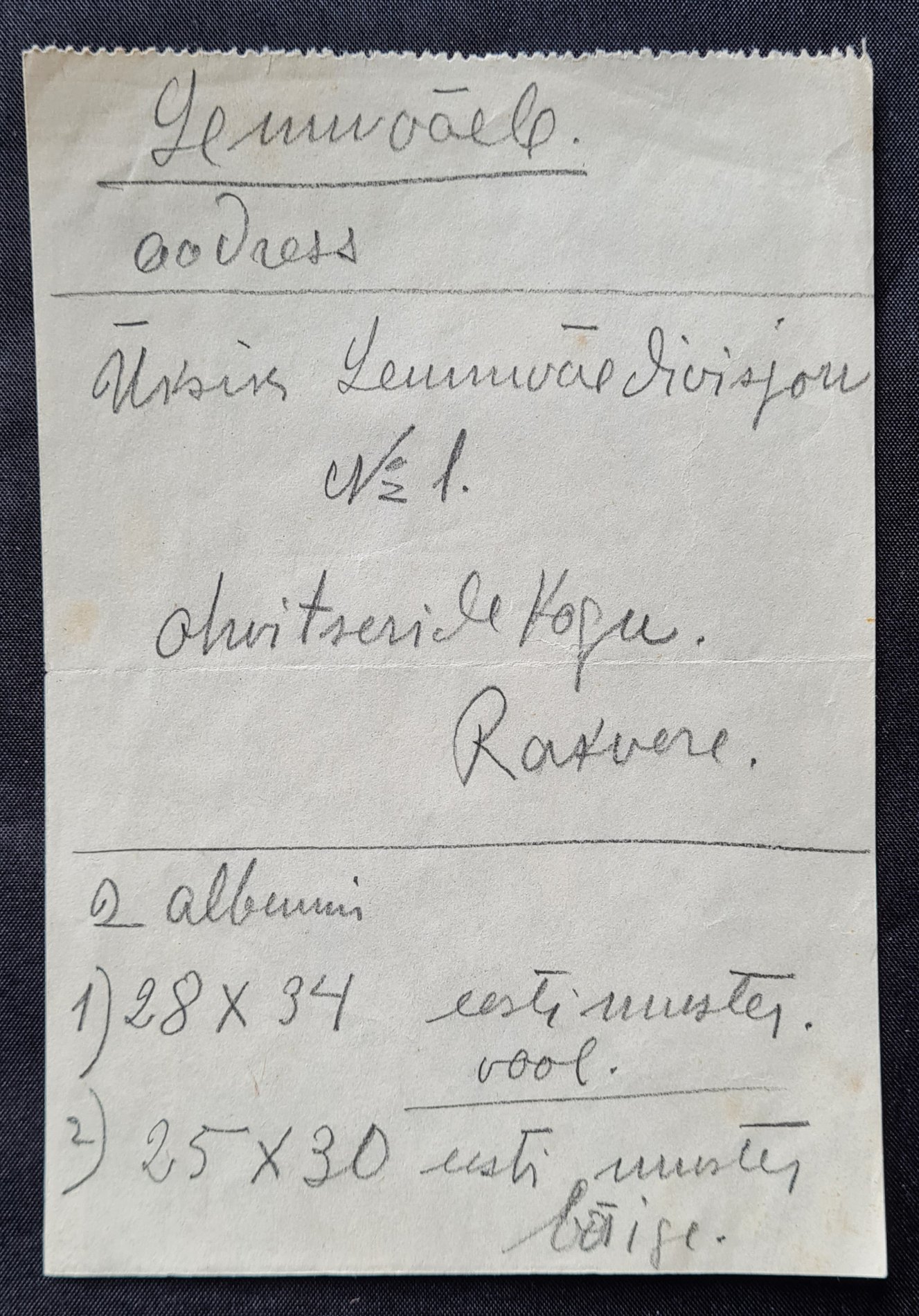 T.L.O. kogu vajab 28-ks skp ühte albumit - 10 aastase lenduri kutses olemise aadressi. See aadress peaks olema sarnane nagu Teie neid juba küllalt olete teinud. Tuleval aastal vajame neid suuremal hulgal. Aadressi kuju ja vorm oleks järgmine.