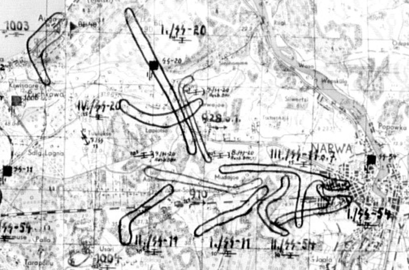 Panen siia veel ka fragmendi armeegrupi Narva suurtükiväe asetuse kaardist 18.07.44. Mul on käepärast vaid selline viletsa kvaliteediga versioon.