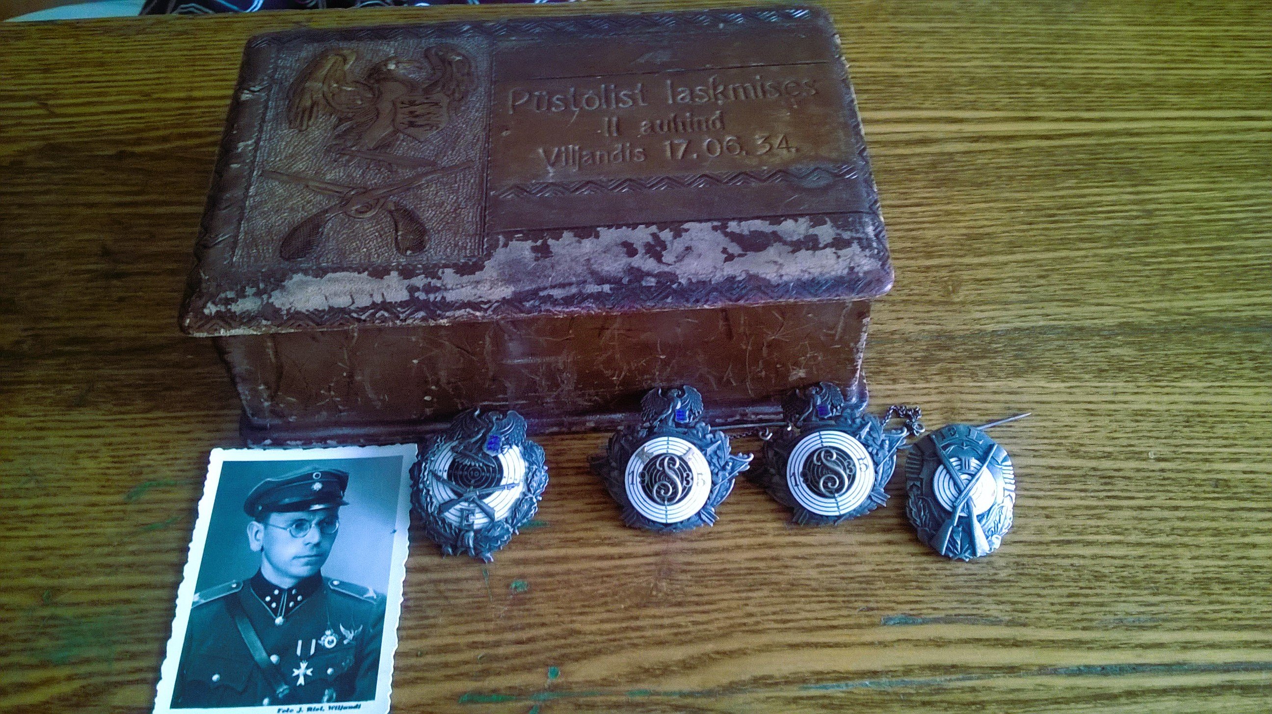 Vanaisa KL laskemärkide komplekt ühes fotoga on väga lahe - nendest võiks juba praegu ägeda raami vormistada // just mingi ürgse pildiraami sisse.. ja kui saaks veel juurde hankida vanaisa puuduva(?) KL Valgeristi, vanaisa malevale vastava KL mütsimärgi ja ehk veel midagi autentset vanaisa vormikuuelt (foto järgi) - siis oleks vaabse super stend 8)