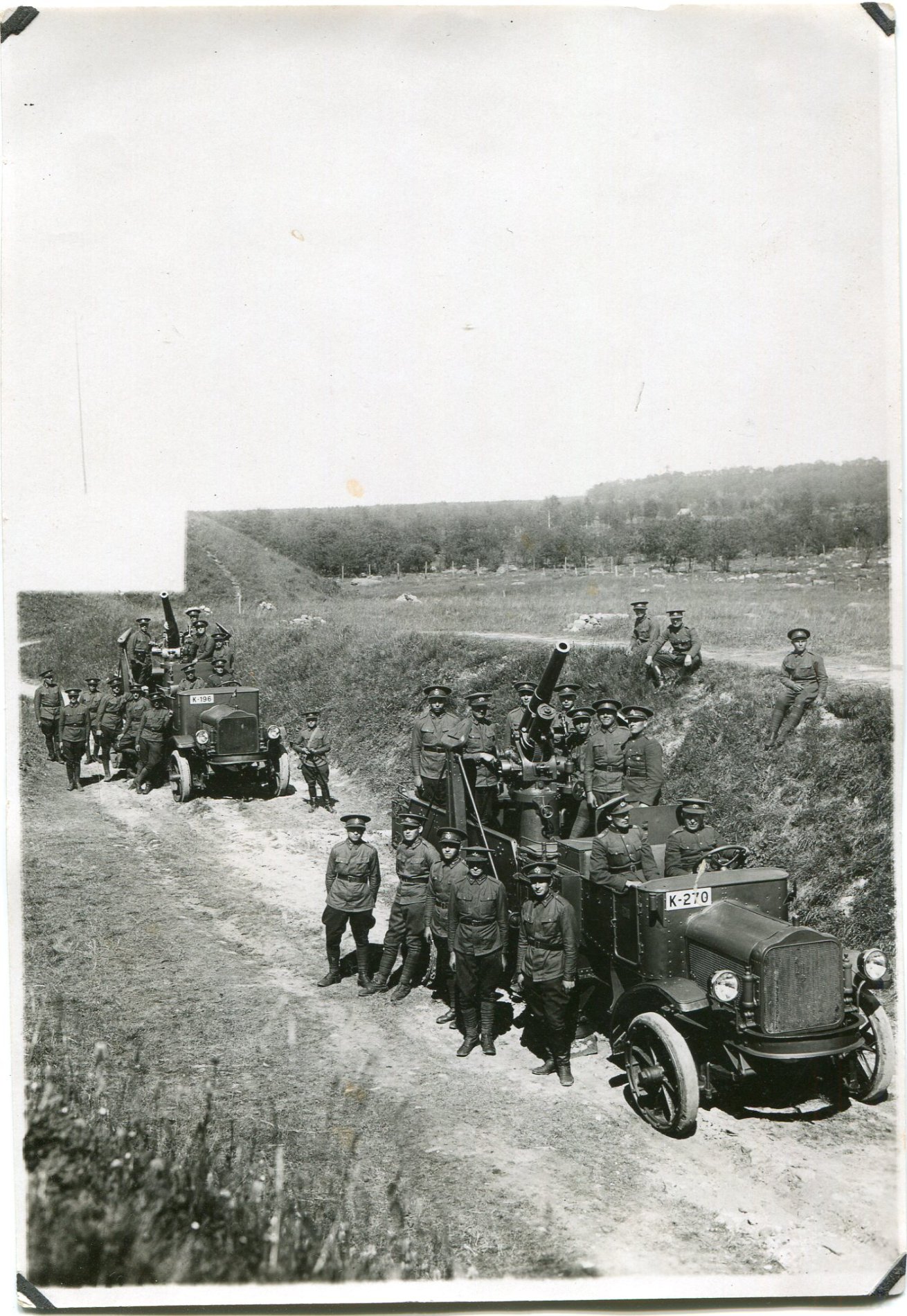 Ülemisel fotol on Õhukaitse suurtükiväegrupi 3. patarei White veoautod (K-196 ja K-270) Viimsis, 27. juunil 1931. a.