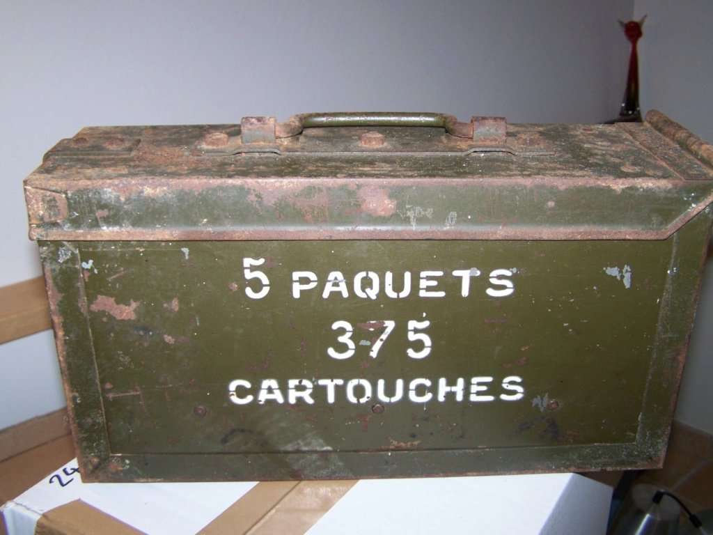Haruldane Prantsuse Chatellerault (FM 24/29) padrunite kast. Kasutati tehnika peal papist karpides padrunite hoiustamisel.