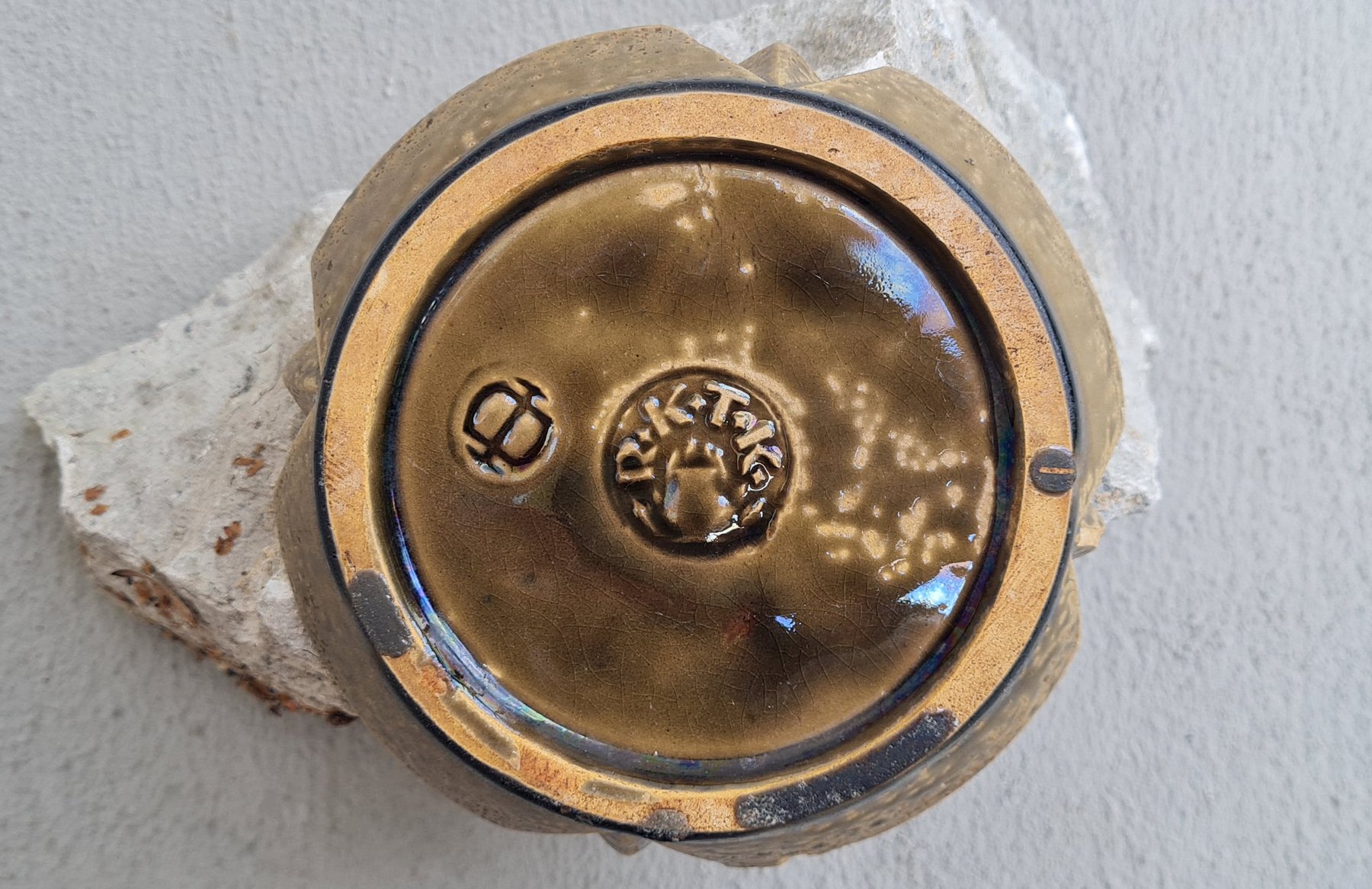 Esiküljel on Vabadusristi motiiv ja kuupäev 24. veebruar 1920. Vabadusrist asutati täpselt aasta varem, 24.02.1919 ja seega ei saa see toos olla kuidagi VR asutamise tähistamiseks mõeldud. Tagumisel küljel on Riigi Kunsttööstuskooli lühend RKTK ja mingi vigur veel, mis võiks olla autori signatuur. Sellise nimekuju sai kool alles 1924. aastal, mis tähendab, et toos on valmistatud 1924. aastal või hiljem. Stiililiselt pakuks, et see jääb 30-ndate II poolde. Läbimõõt on umbes 10 cm. Omab keegi teavet sellise toosi kohta? Kas see vigur tagumisel küljel võib olla kunstniku signatuur ja kui nii siis, kes see autor võiks olla?