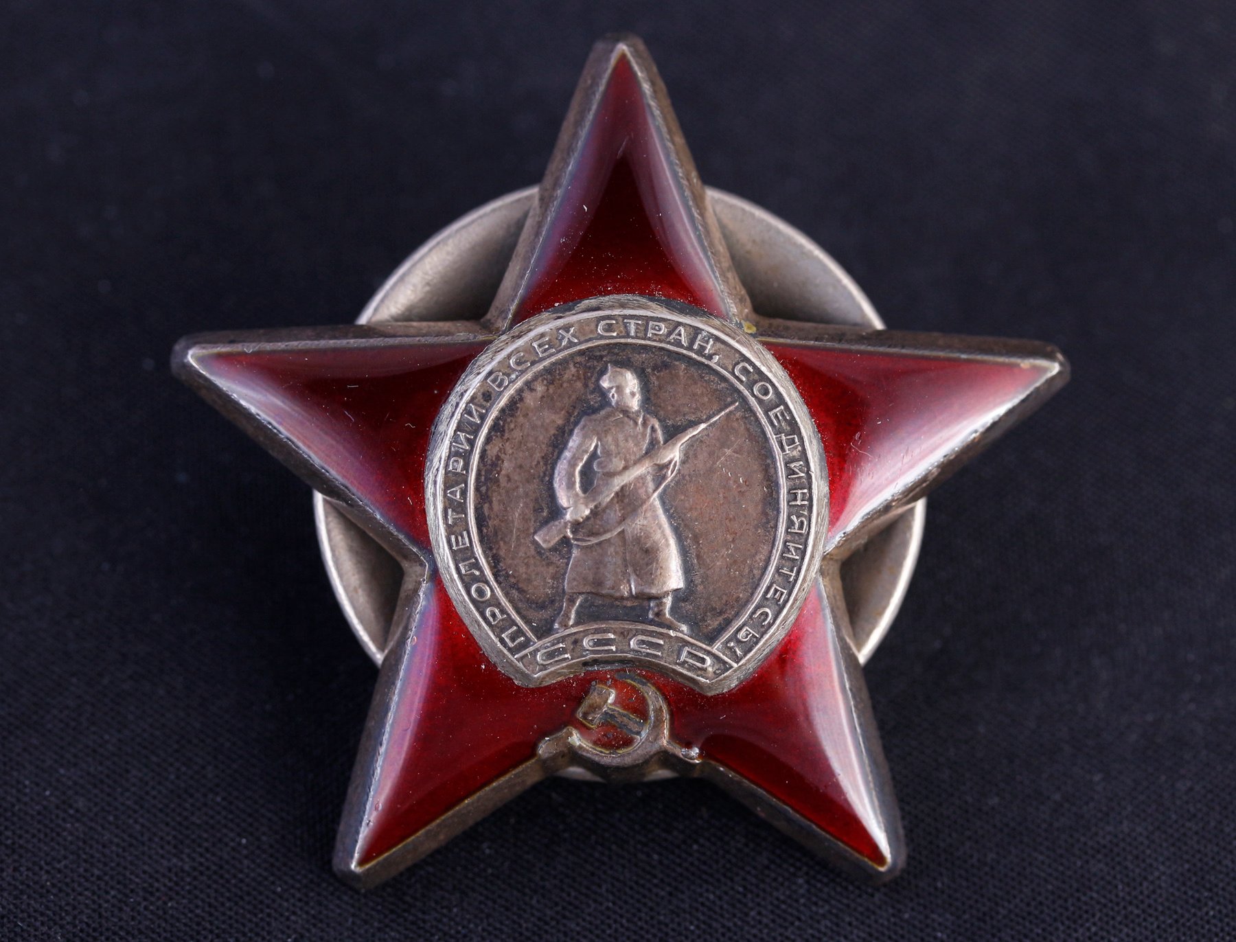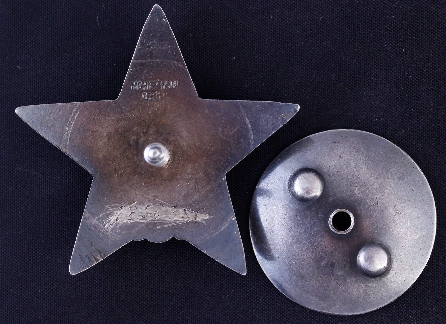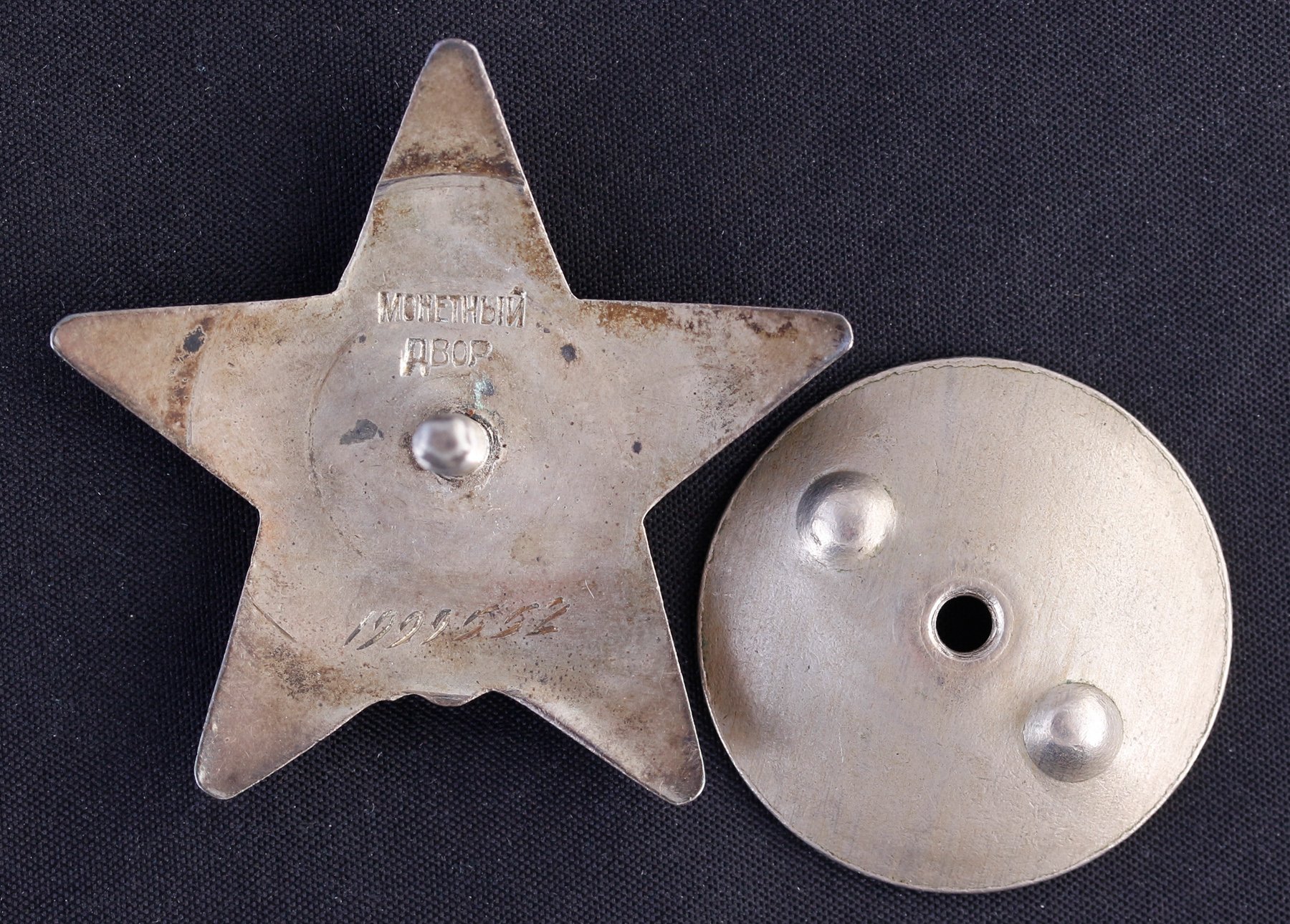 Punatähe orden 1855386 - kindlasti korpus ja antud Saaremaa või Kuramaa lahingute eest. Keegi on mingil põhjusel üritanud numbrit maha kraapida aga on õnneks kiiresti sellest tööst väsinud.