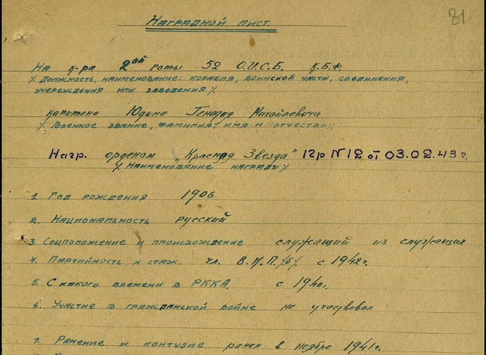Osales mitmel lahinguretkel allveelaeval „K-56“ fašistlike vallutajate vastu 1944. aasta kampaanias.
