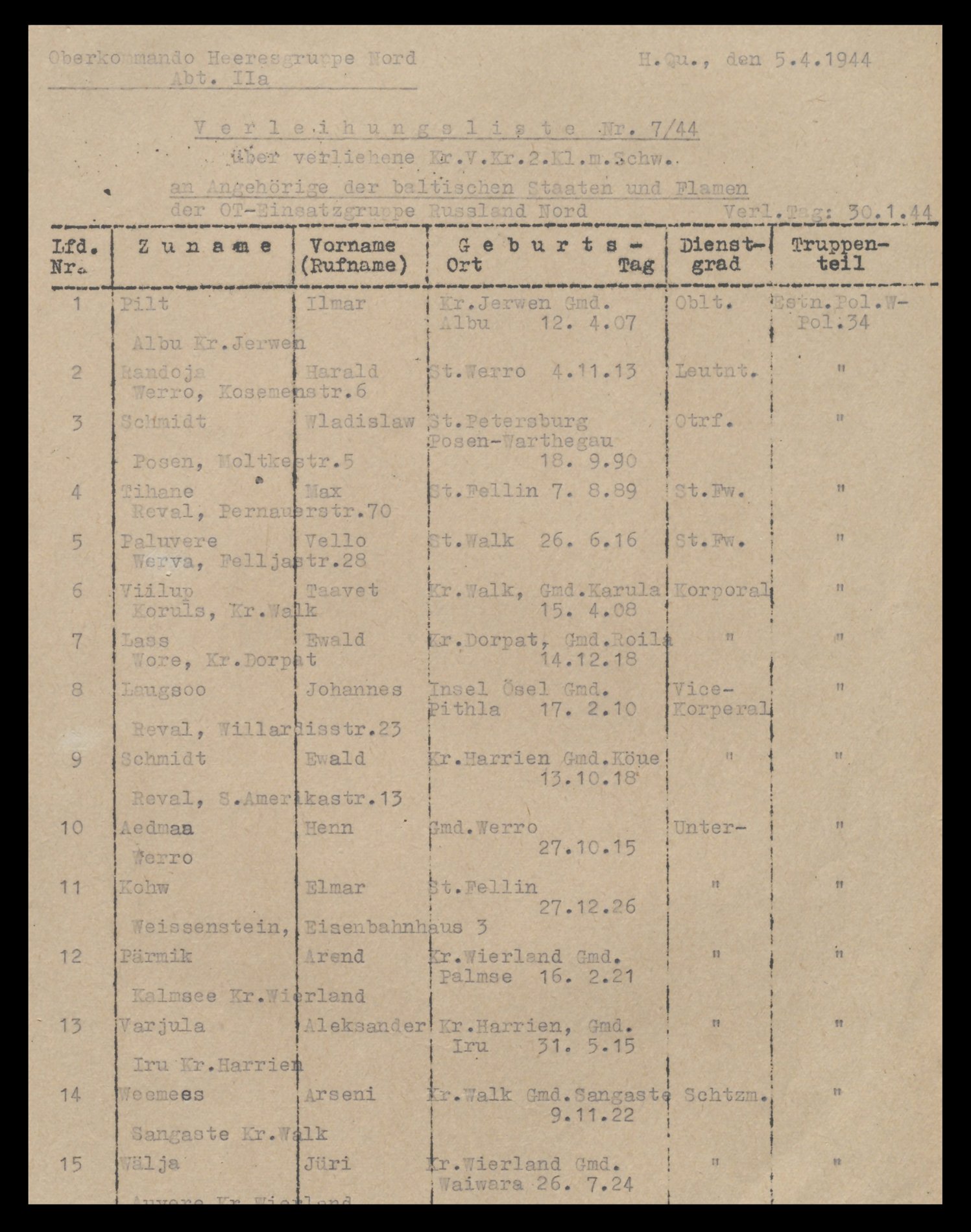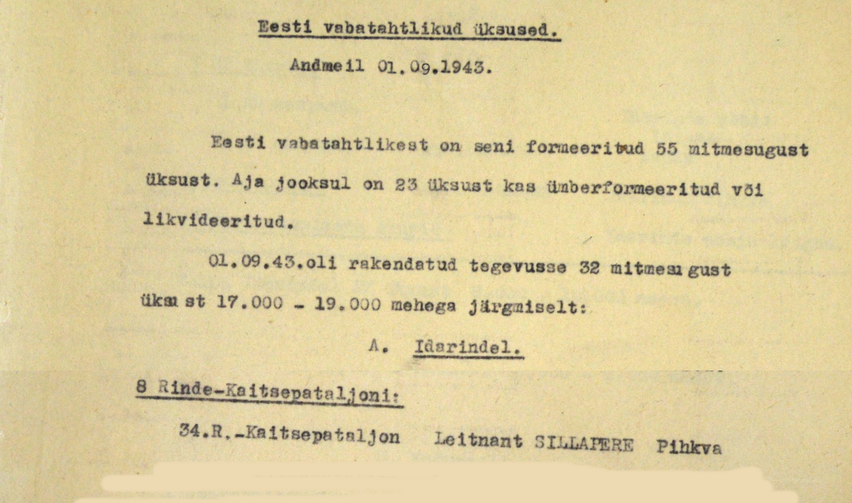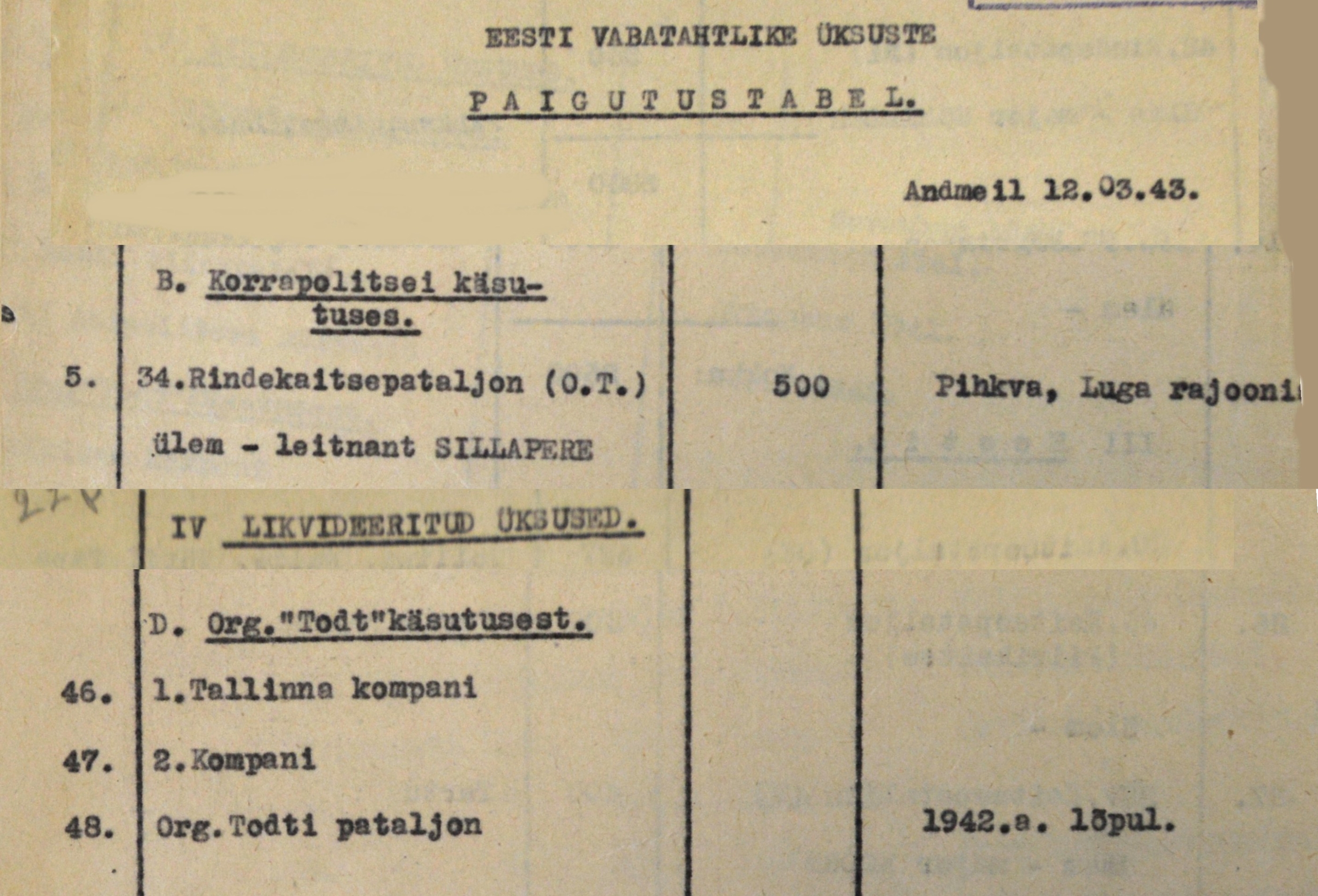 ivalO kirjutas: E Aug 01, 2016 10:24 pm Kui nüüd üles võtta arhiivi materjalid, siis figureerib Sillapere juba 1942. aastal patüli ja leitnantina. Järgmised äramärkimised on kahel korral 1943. aastal ja viimane jaanuarist 1944.