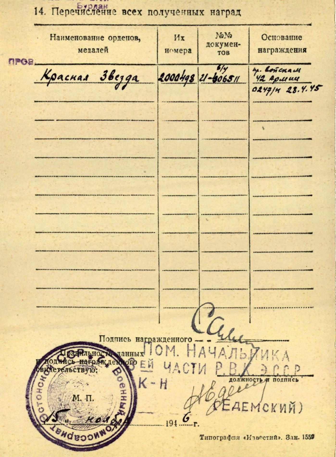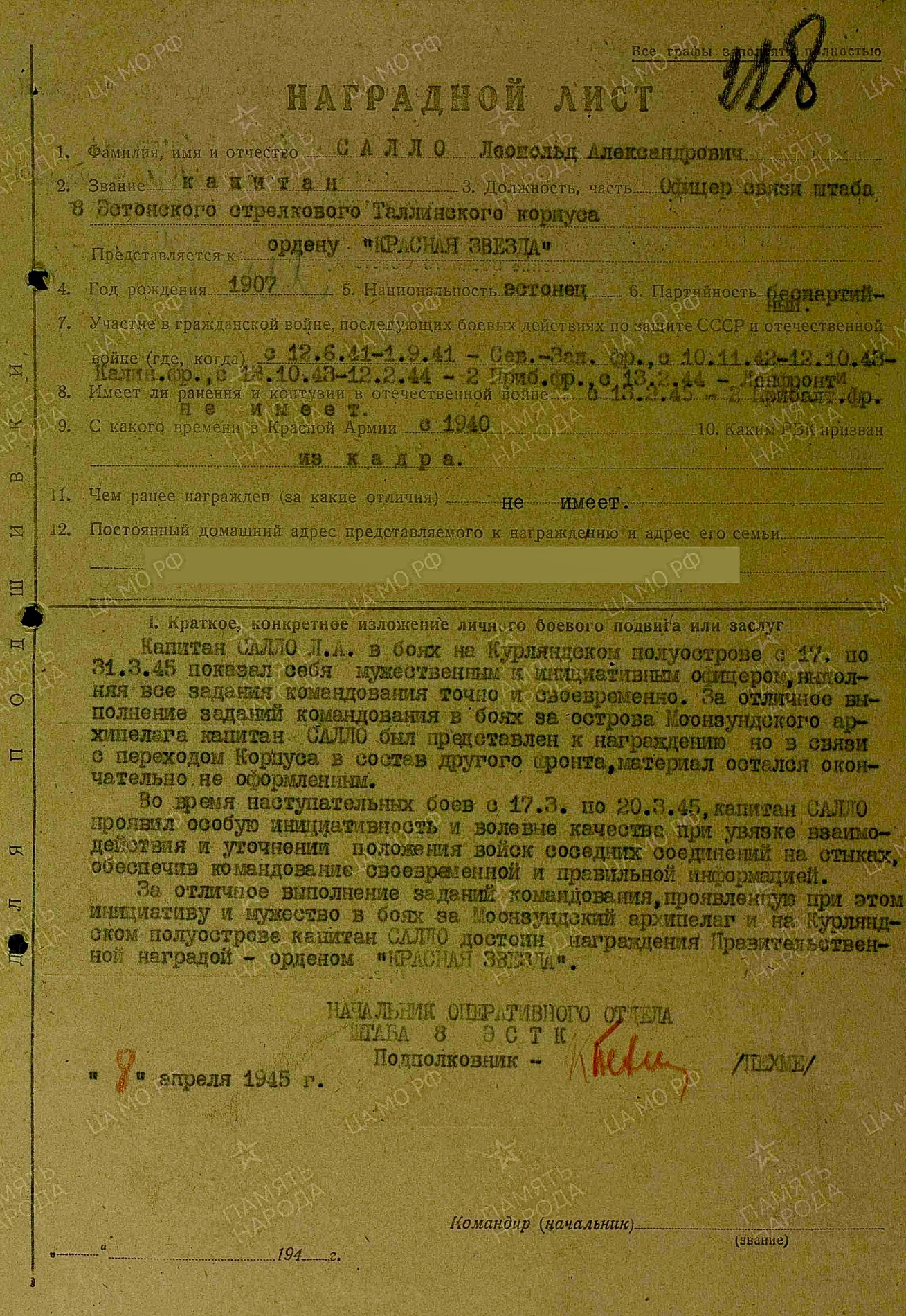 Leopold Sallo, Punane Täht №2000498