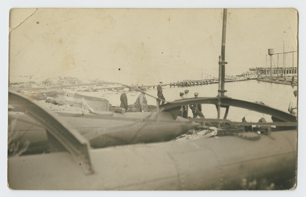 Vist ikka on tegu märklaua ühe bontooni osaga . Foto paremas servas on näha vees mitmest bontoonist koosnev ehitis millel on peal püstised mastid mille vahele tõmmati present . Kui mõni bontoonidest saigi tabamuse siis teised bontoonid hoidsid ehitist ikkagi veel veepinnal . Arvata võib et peale ühe bontooni tabamist seisati õppelaskmine ja märklaud toodi parandusse . Leidsin netist ka ühe valmis märklaua foto , peaks olema venelaste oma .