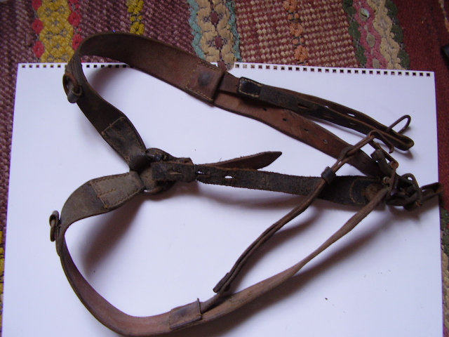 Y - rihmad: Nahk super. Õmblused terved. Markeeringud olemas. Puudu tagumise rihmal neet paistab juba sõjaajal olema traadiga fikseeritud. Originaal tolmgi veel peal