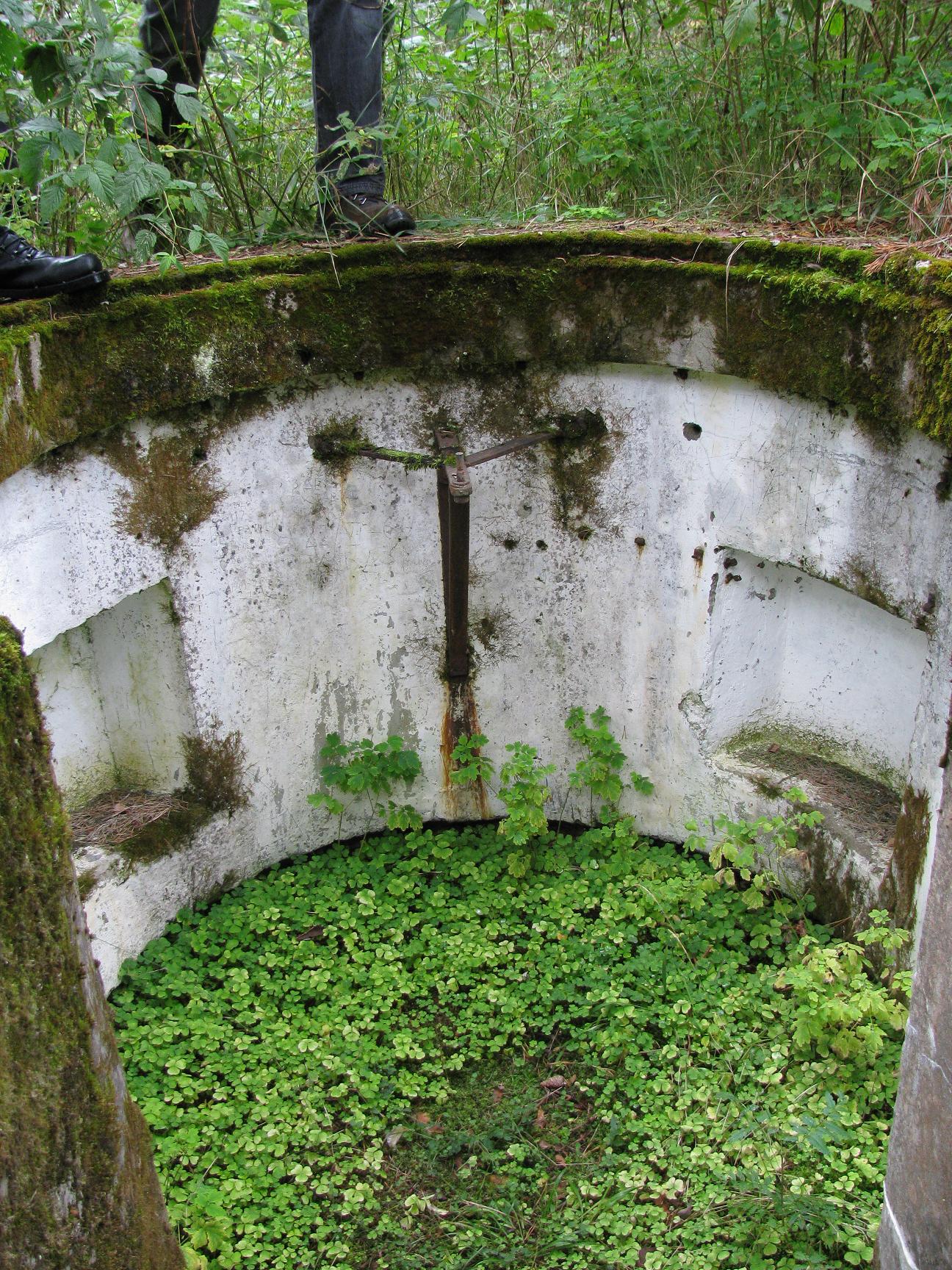 Generaatoriruum. Generaator asetses 1,5-2 m sügavuses augus, praegu on see süvend täis kõikvõimalikku kolu. Uhke disainiga tsaariaegsed kronsteinid. Ja siin on juba peakaliiber, EW patarei No-1.