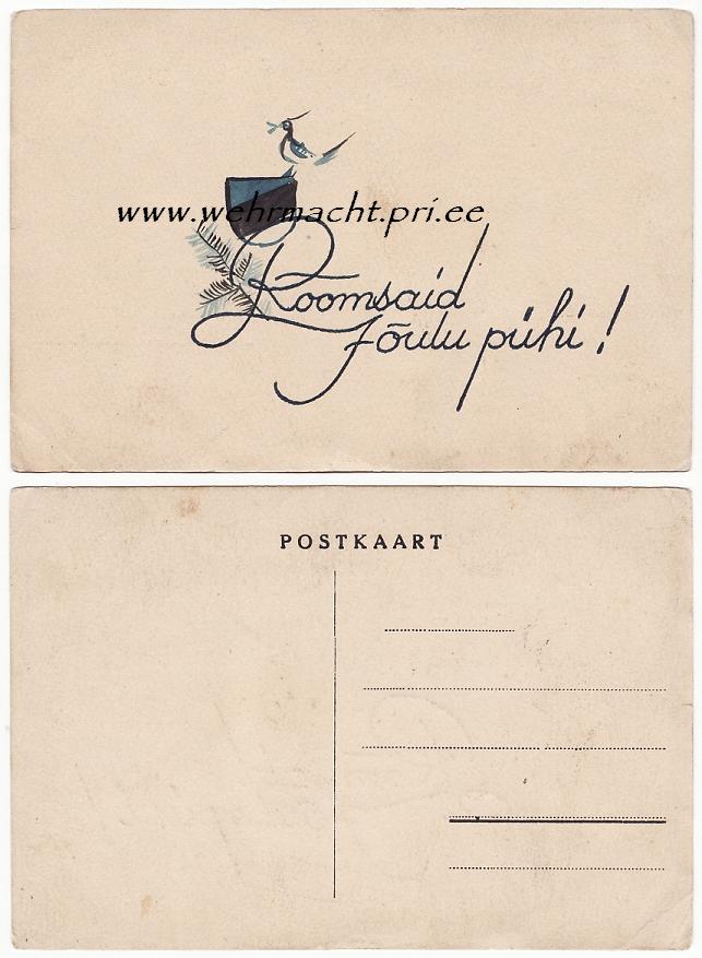 Jõulukaardid juba saabuvad... tegemist on käsitsi joonistatud postkaardiga, mis võis näiteks olla mõeldud koos pakikesega rindele saatmiseks. Kas keegi on varem ka kohanud midagi sarnast?