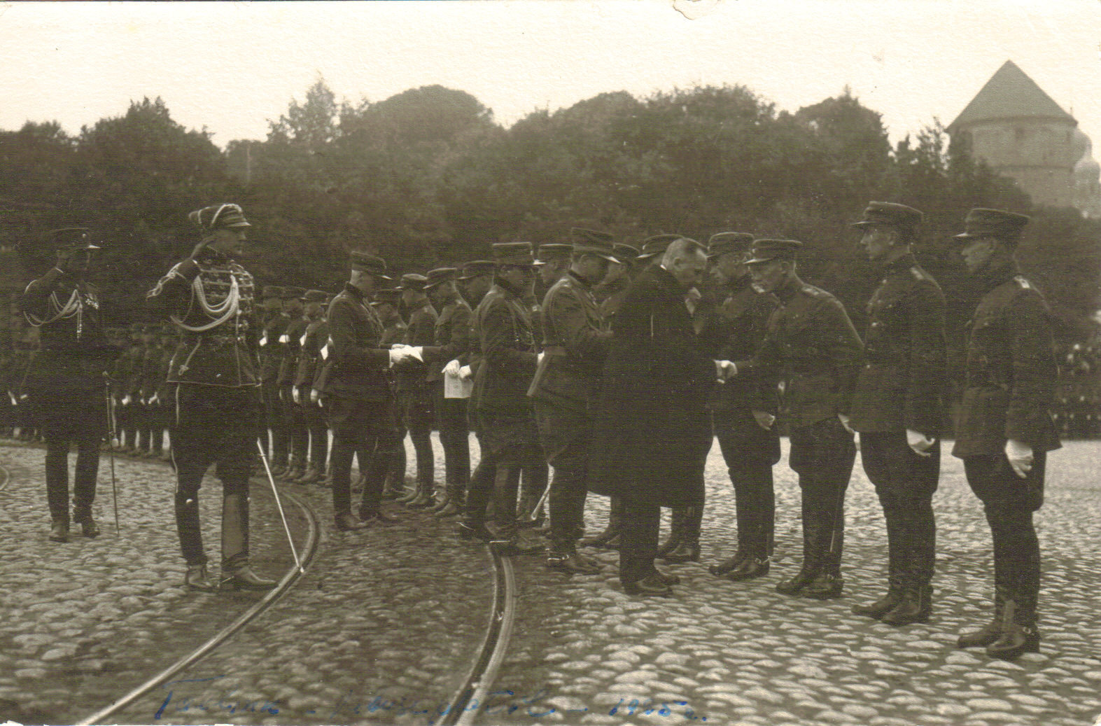omandasin täna foto mida müüdi pealkirja all "sõjaväelaste autasustamine" või umbes niimoodi. Täpsemalt vaadates aga tuleb välja et tegemist on hoopis sõjakooli lõpetanud kadettide ülendamisega. Vormi järgi võiks see olla 1924 aga mulle tundub et paks tsivilist on Jüri Jaakson ning tema taga tuleb kindralmajor Jaan Soots. Jaakson oli riigivanem ja Soots sõjaminister detsembrist 1924. Ülendamine oli tavaliselt augustis nii et see peaks olema august 1925.
