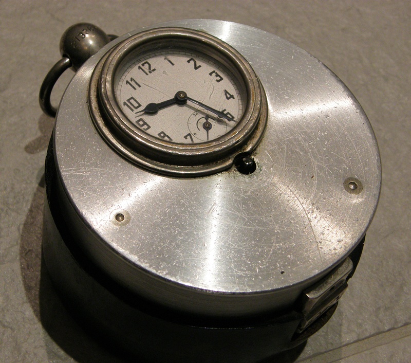 Oskab keegi öelda, mis asi see on. Kui üles keerata, siis tiksub. On nagu kell ja samas nagu ei ole ka. Paksus alumiinium kestas, mis omakorda on nahast vutlaris. Päris selline suur läbimõõduga ca 12- 13 cm. On mingi vihje, et tegu võiks olla tunnimehe kellaga. Aga ei tea täpsemalt midagi.