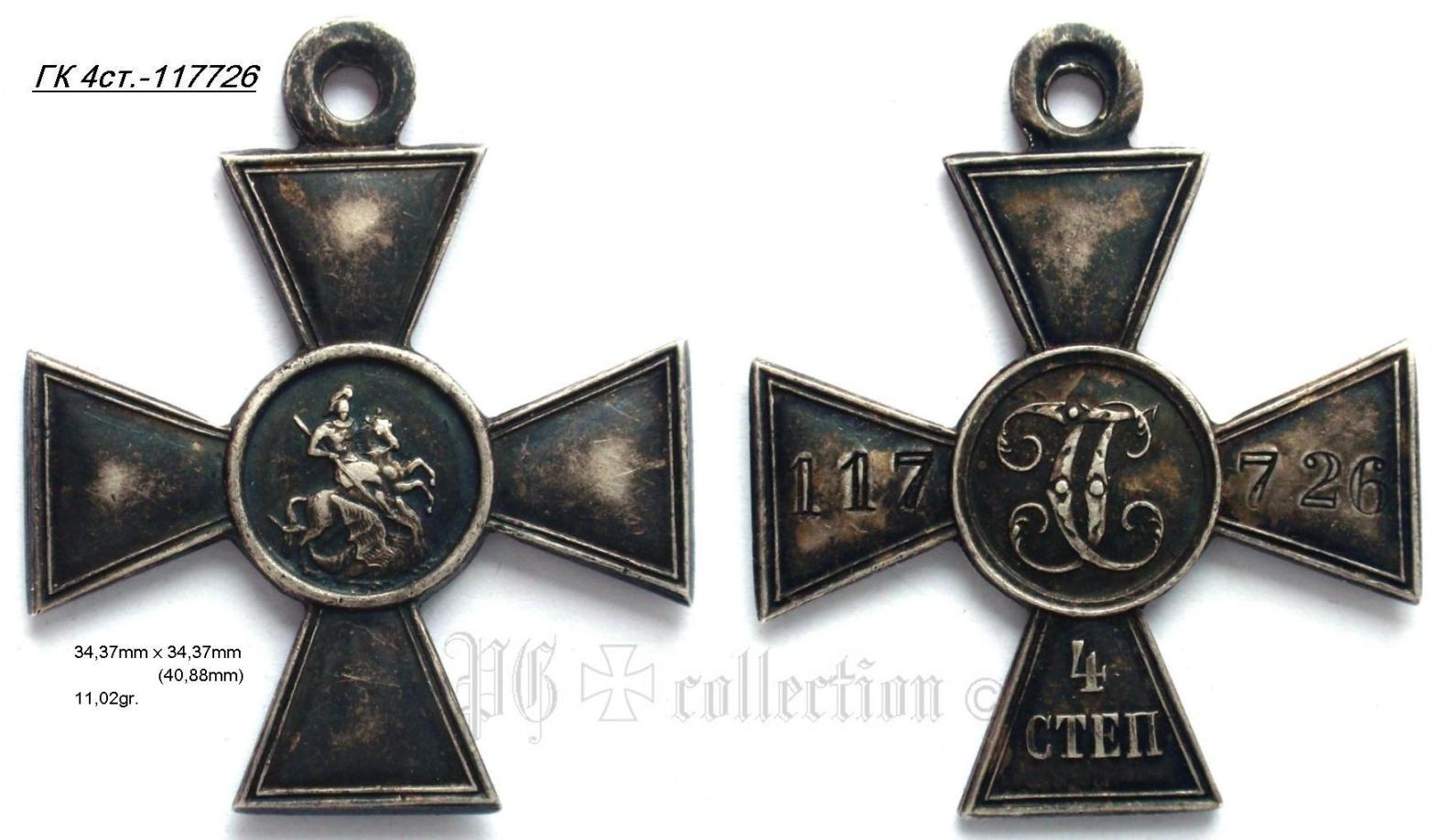 "Гк 4ст. No117653 – награжден Меншиков Михаил, ефрейтор, 108 Саратовский пехотный полк. За бой у деревни Голынки, 8.02.1915"