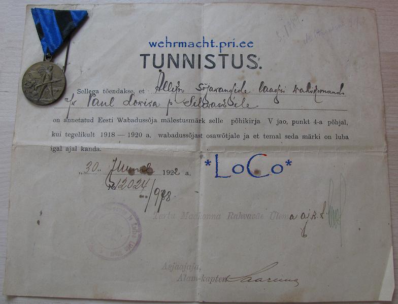 Antud Alliku? sõjavangide laagri wahikomando rahwawäelasele Paul Siliwaskile.