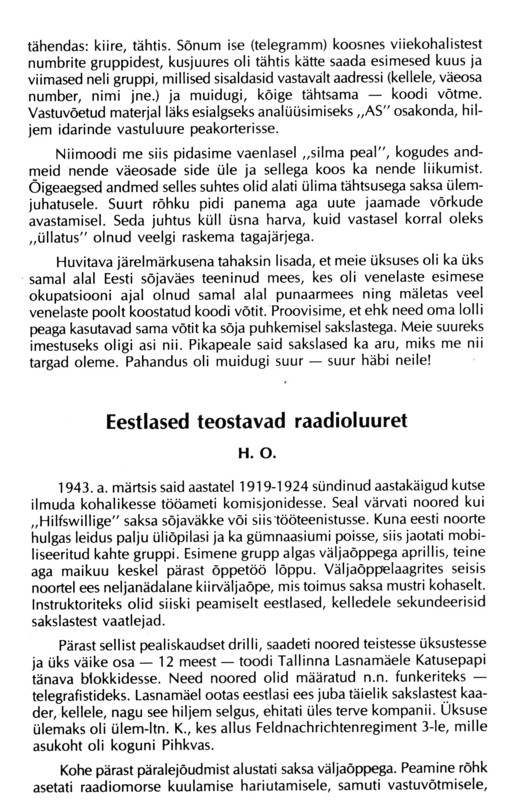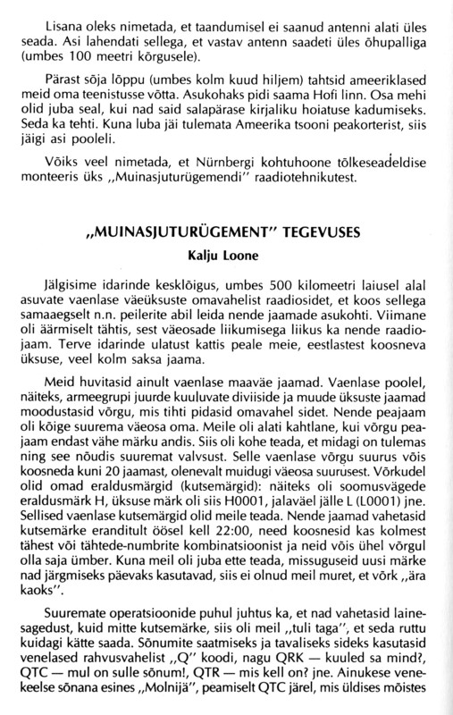 tänud postituse eest.Tõepoolest seda raamatut riiulil ei leidu ja asi seda huvitavam, et jupi sellest on kirjutanud minu onu. Nimi on küll vähe muutunud ehk Kaljost on saanud Kalju aga ülejäänu tõesuses pole põhjust kahelda. Kusjuures sõjaväes kutsuti Kaljot hoopiski Jaagupiks.
