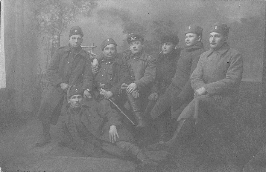"Suurem rühm eestlasi sattus Saksa sõjavangis olles Prantsusmaale sakslaste poolt okupeeritud aladele. /.../ Pärast sõja lõppu 11. novembril [jutt käib aastast 1918] jäid /.../ mõneks ajaks täiesti omapead. /.../ Juunis 1919 külastas mehi Eesti saadik Karl Robert Pusta, kes alustas kõigi liitlasriikides olnud eestlastest sõjavangide koondamist Bordeaux'sse. /.../ Kogunes 450 meest, kellele anti ühevärvilised Ameerika sõjaväe riided. Eestlased õmblesid käisele Eesti lipuvärvid, et eralduda ameeriklastest."