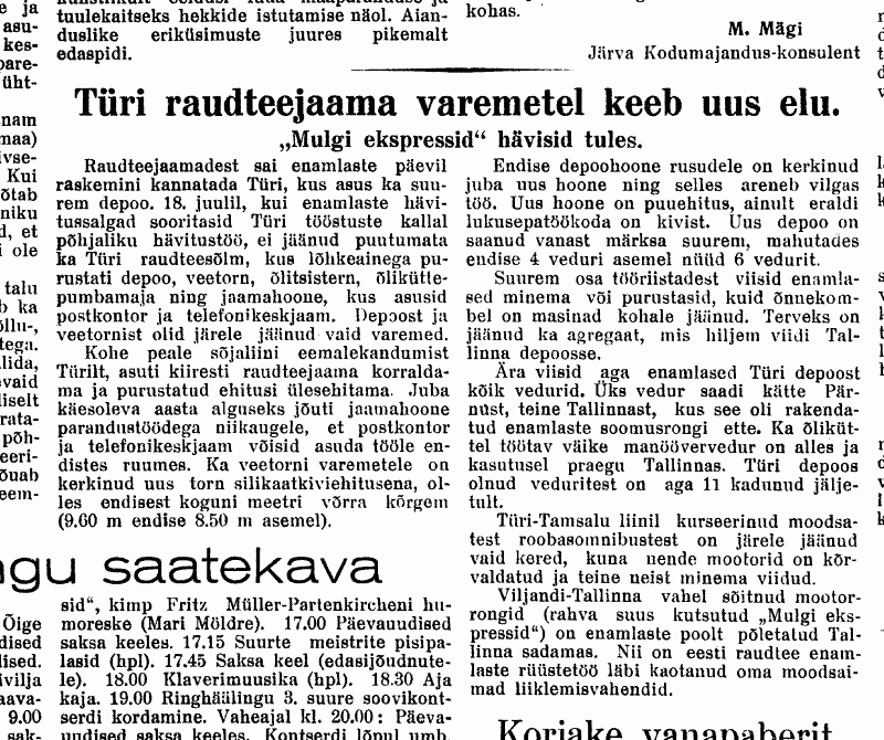 "/.../ Türi saatejaama ülem oli sakslane Schnellewald. Personali hulka kuulusid poliittöötajad Grabers ja Wunschkun, saatetehnikud Herbert Vessar, Voldemar Kivisepp ja Ants Kajandi, valveametnikus Arvi Sidron, Johannes Mikkola ja õpilane Järv/.../"