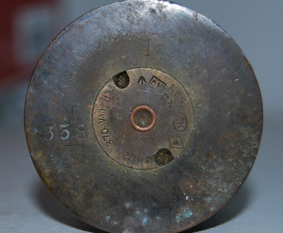 No jah tundub küll nii ka selle noole järgi kuid mis ajajärku ja mis toru sees see on käinud? Kaliiber kuidagi väga imelik,et ei anna nagu kahuri mõõtu välja ja mingi pritsi jaoks liiga jäme. Samuti hülsi kuju järgi ei julgeks II MS aega teda kirjutada.Samas ka küsimus jääb tema sattumine Eestisse kas see on juhuslik?