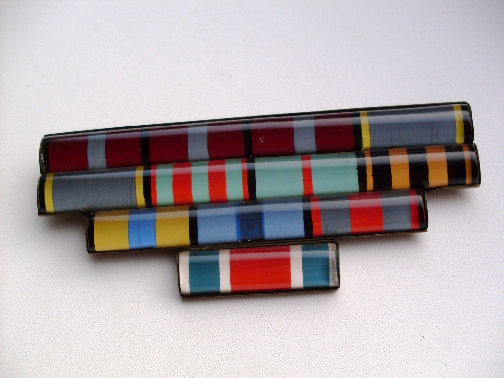 kõik 4 on lahedad liistud aga eriti lahe on see minimalistlik ebastandardse 2x2 paigutusega liist all vasakul - NLiidu polaaralade kaitsja medal koos medaliga võidu eest Saksamaa üle + 2 vanemat juubelimedalit 60-test... Pakun välja, et see võis kuuluda naisterahvale