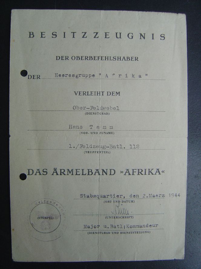 Leidsin WAF'ist sellise tunnistuse, mis antud Hans Tamm'e nimelisele allohvitserile.