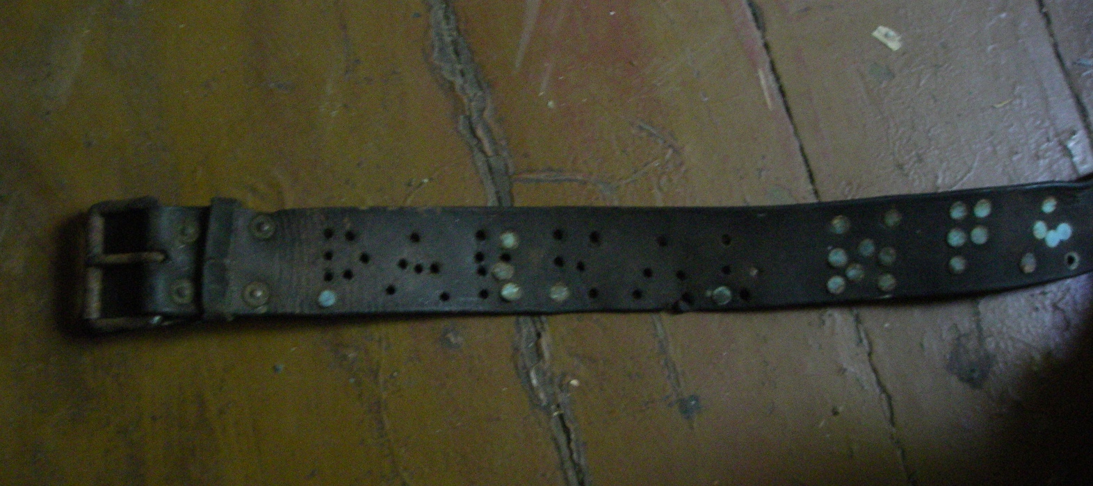 Soome armee rihm. Sõjaaegne. Peale needitud nimi. Leitud Eestist. Mälu järgi oli vist seos metsavennaga. Nahk pehme aga pannal roostes. Ca. 95 cm. 3.-