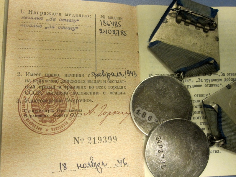 Teine vapruse medal 2 402 785 saadud vastuluureüksuse SMERSH käsutuses karistusüksuses olles ( ilmselt Kuramaal ), kus peeti erilist hoolt selle üle, et kõik kes peaks on ikka eesliinil ja täidavad oma lahinguülesandeid. Lühidalt siis midagi sellist. Tegelikult esitati ta viimase eest Punatähe ordenile, aga sai Vapruse medali.