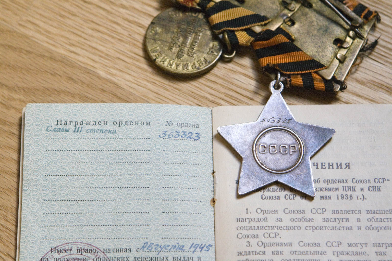 "Za otvagu" nr 2 764... ja "Za bojevõje zaslugi" on numbrita. "Võit Saksamaa üle" medali dokument on allkirjastatud polgukomandör Ilmar Pauli poolt.